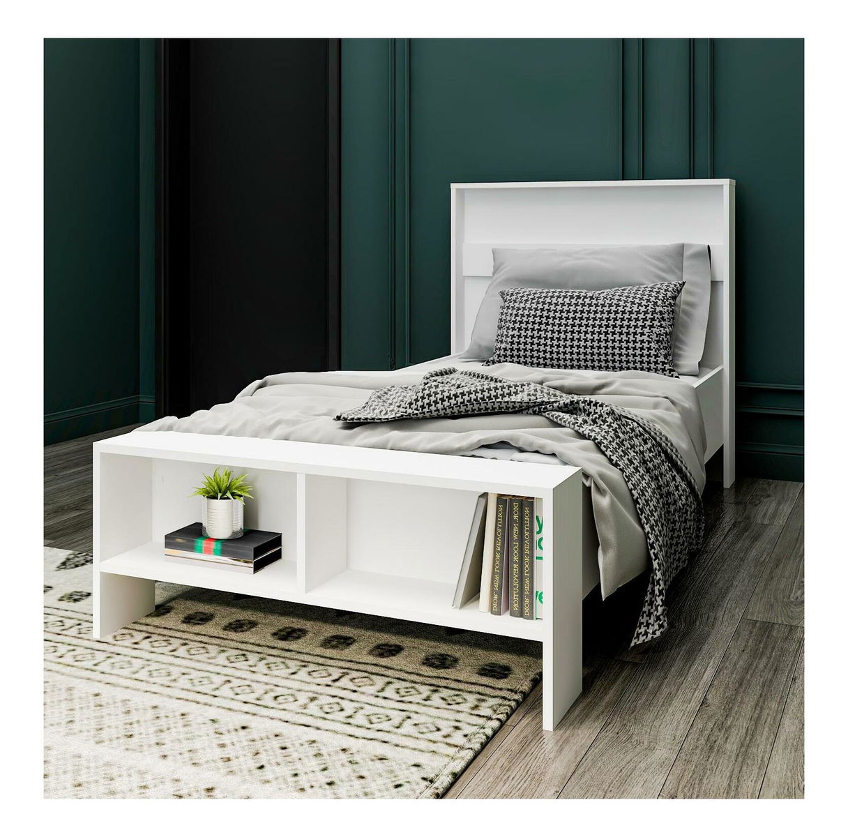 Pat de o persoană 100 cm Lopope (alb) (cu somieră)