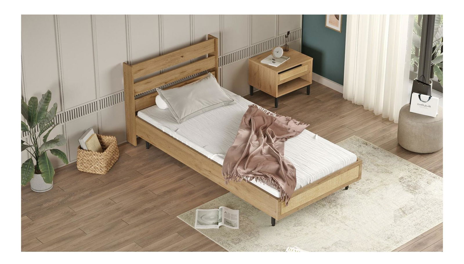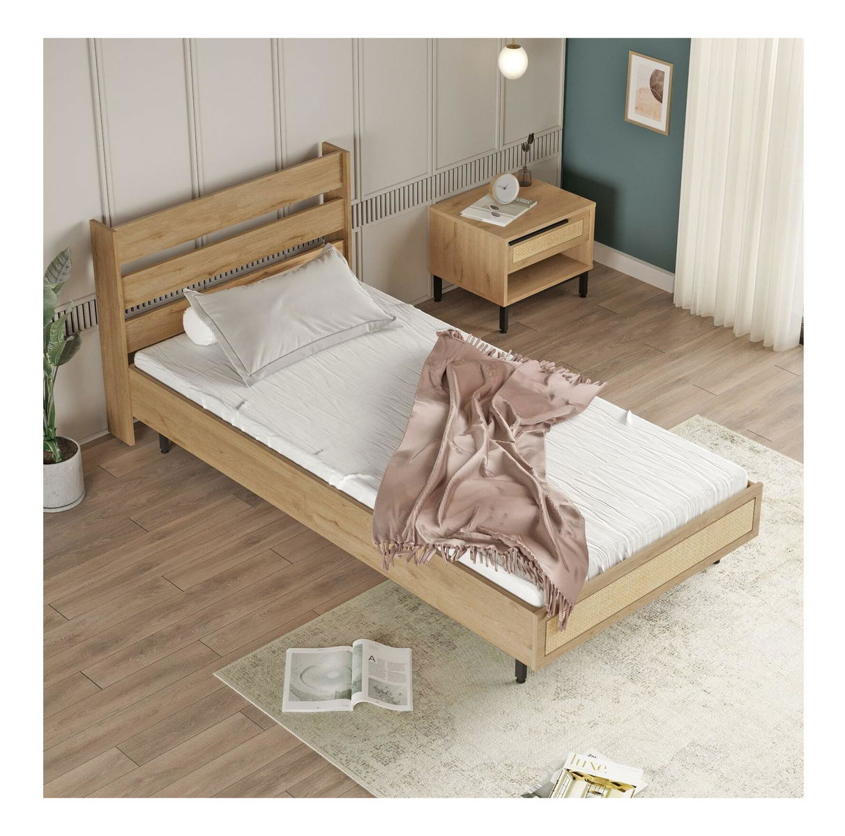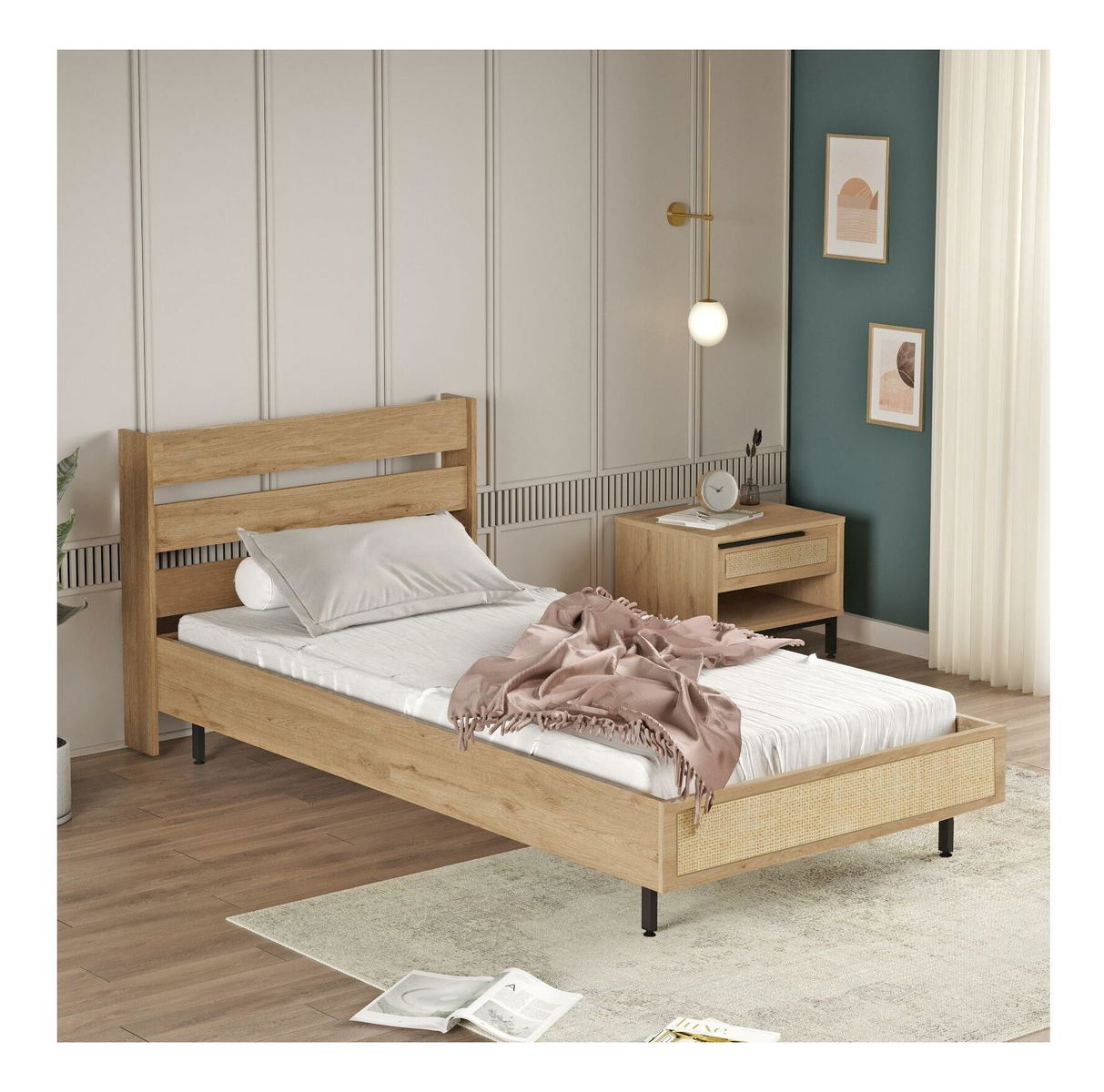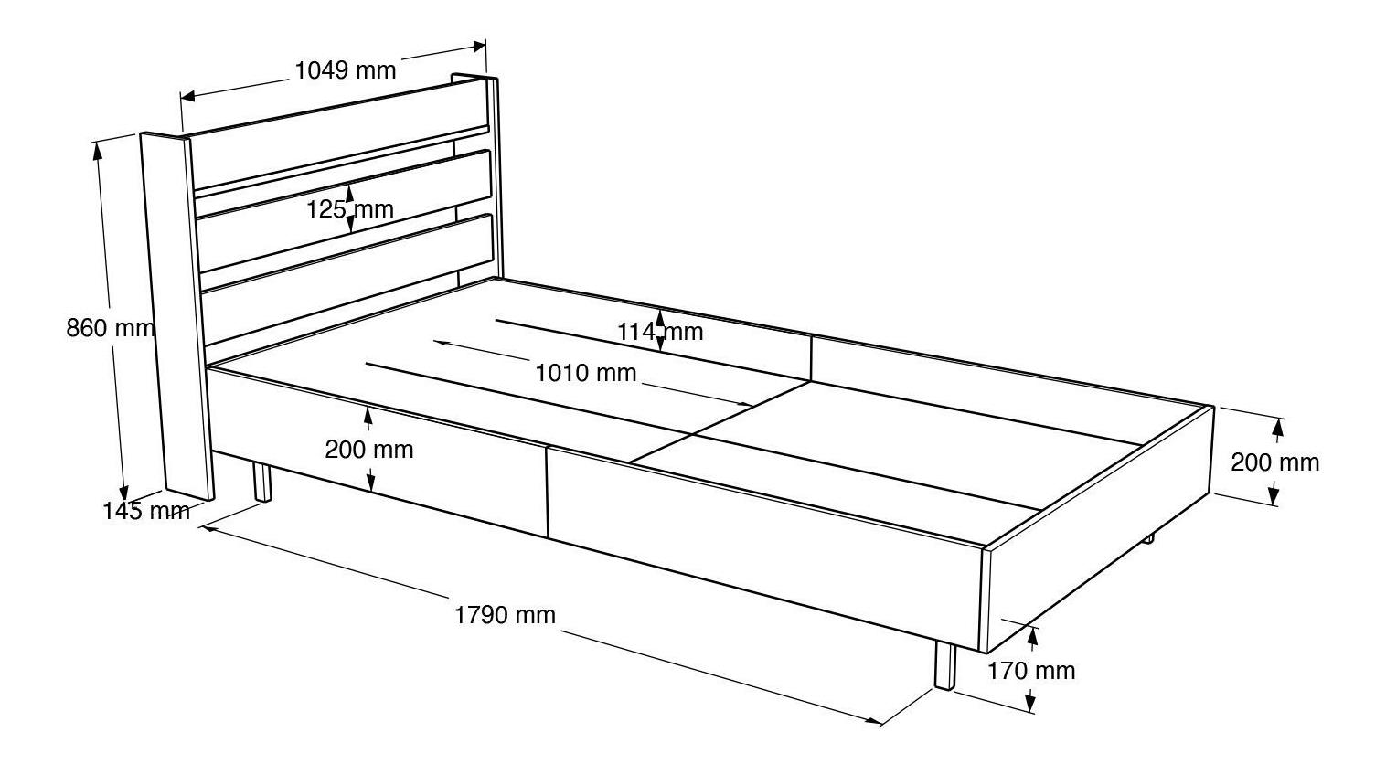 Pat de o persoană 100 cm Otto 13 (fără somieră) (nuc + stejar + negru)