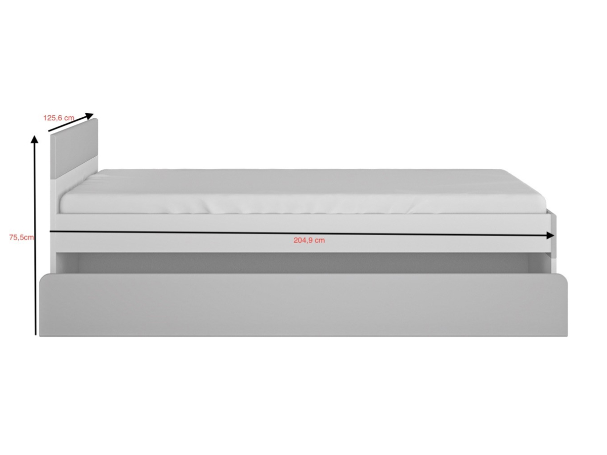Pat de o persoană 120 cm Albunus Z02 (Alb alpin + Gri lucios) (cu somieră)
