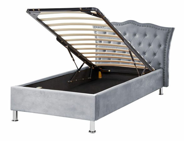Pat de o persoană 200 x 90 cm Metty (gri) (cu somieră) (cu sp. depozitare)