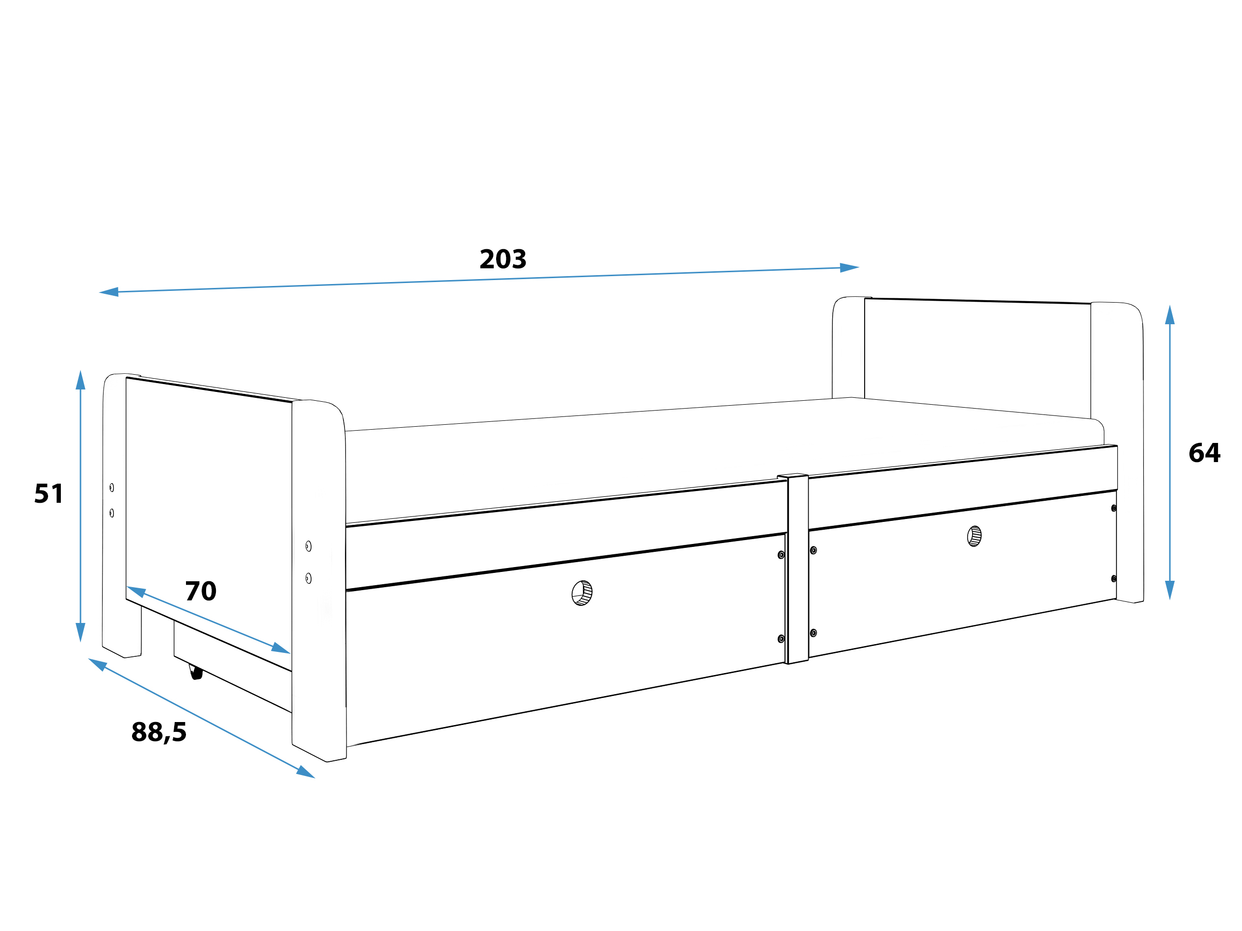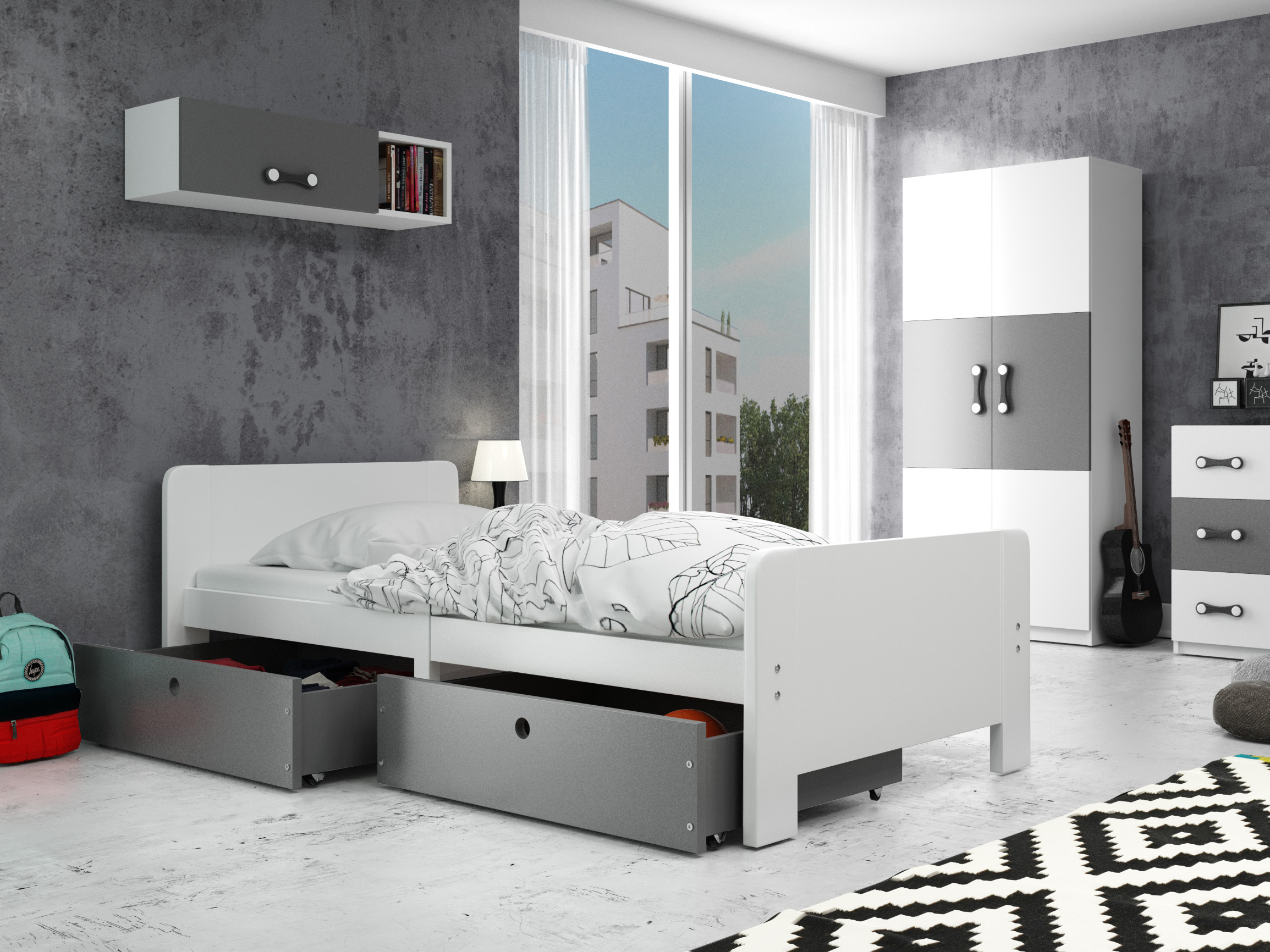 Pat de o persoană 80 cm Aria (alb + grafit)