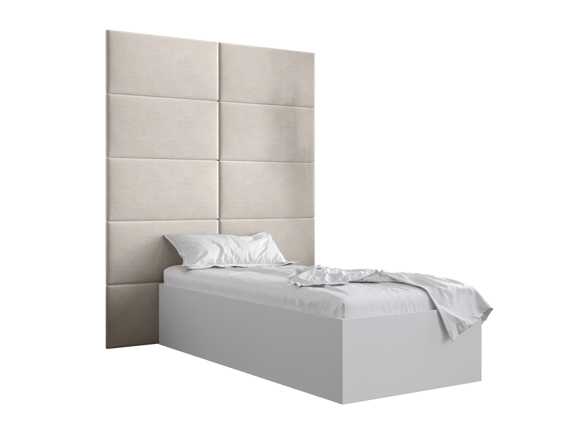 Pat de o persoană cu tăblie tapițată 90 cm Brittany 1 (Alb mat + crem) (cu somieră)