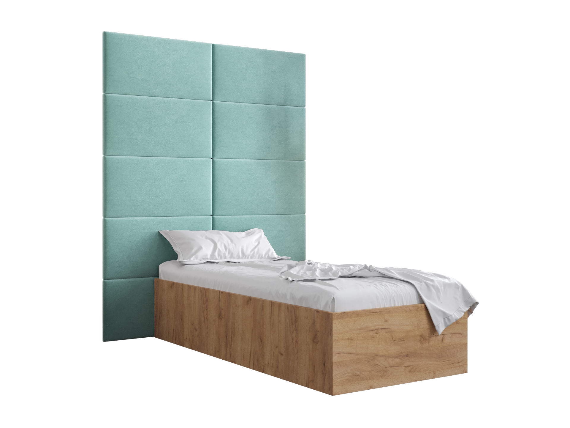 Pat de o persoană cu tăblie tapițată 90 cm Brittany 1 (Stejar craft auriu + mentă) (cu somieră)