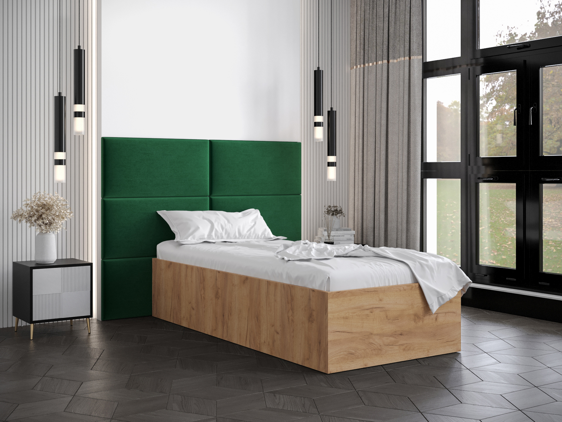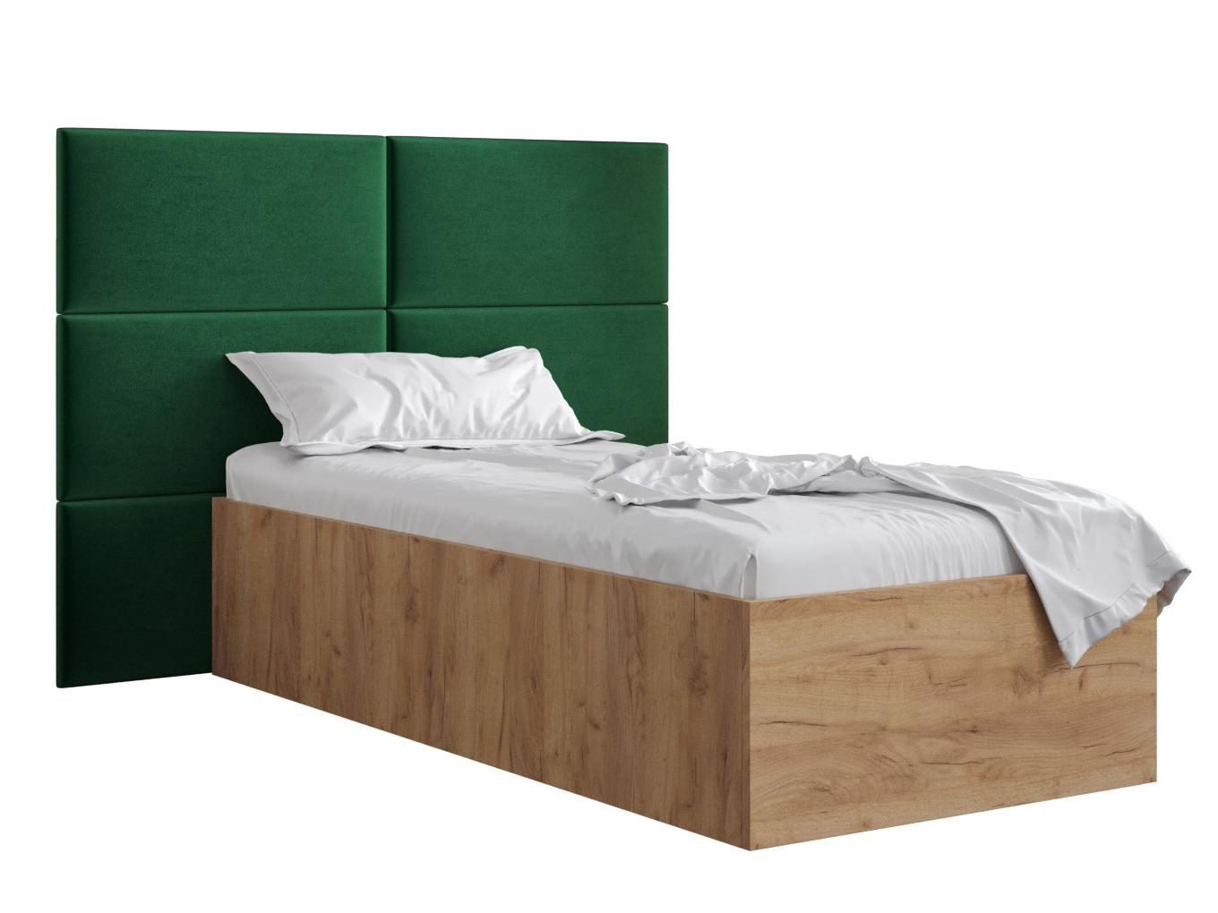 Pat de o persoană cu tăblie tapițată 90 cm Brittany 2 (Stejar craft auriu + verde) (cu somieră)
