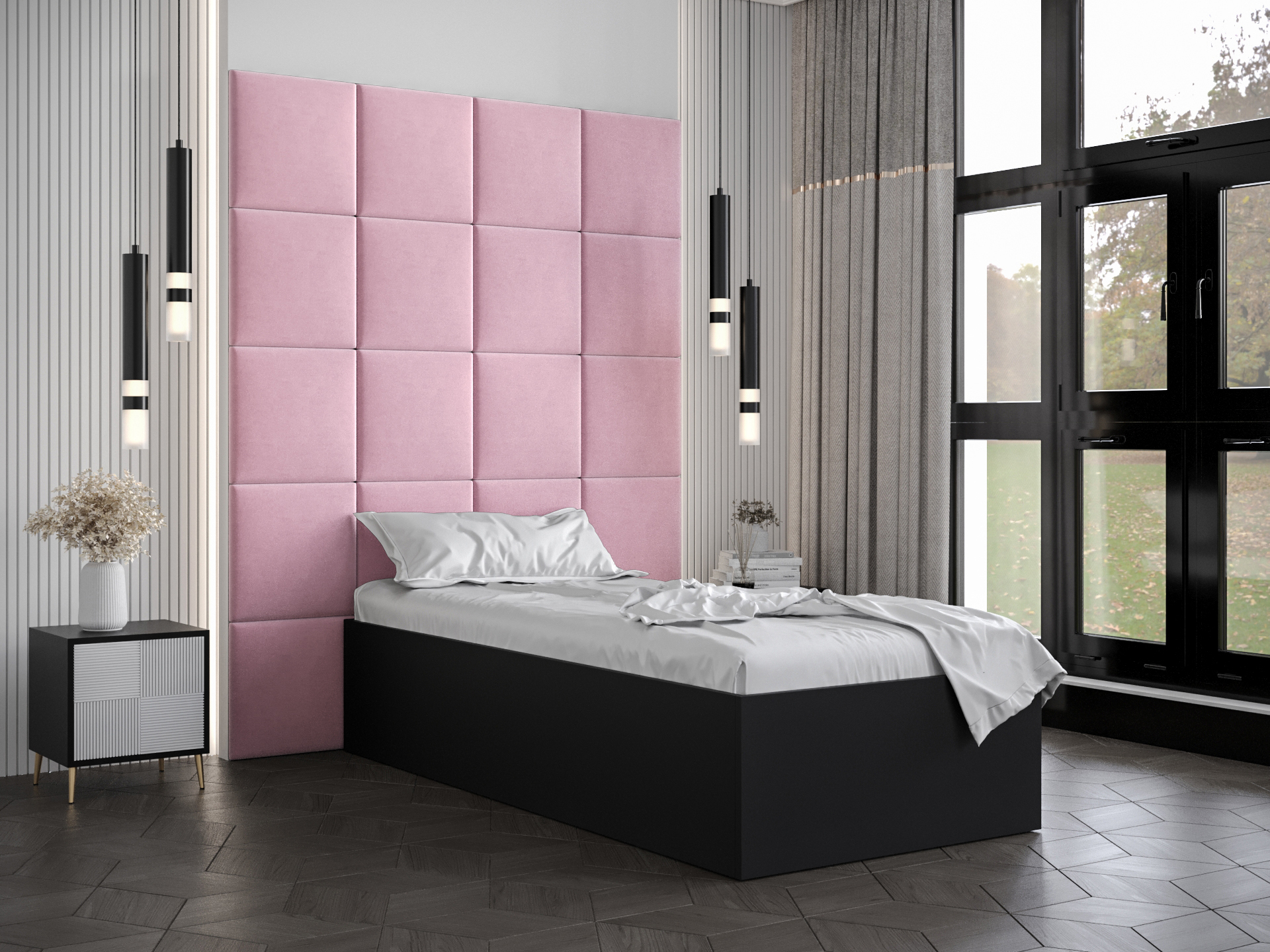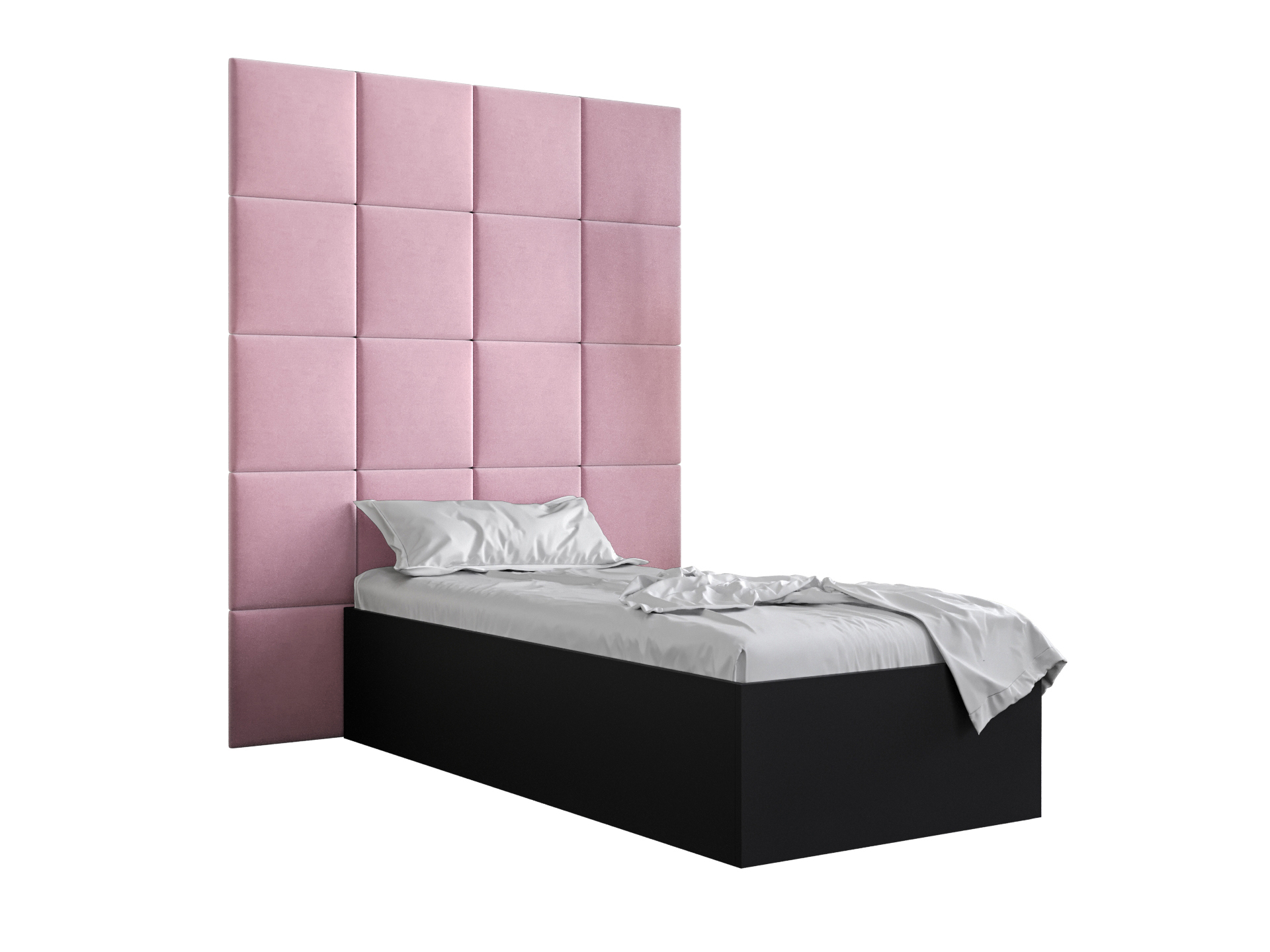 Pat de o persoană cu tăblie tapițată 90 cm Brittany 3 (Negru mat + roz) (cu somieră)