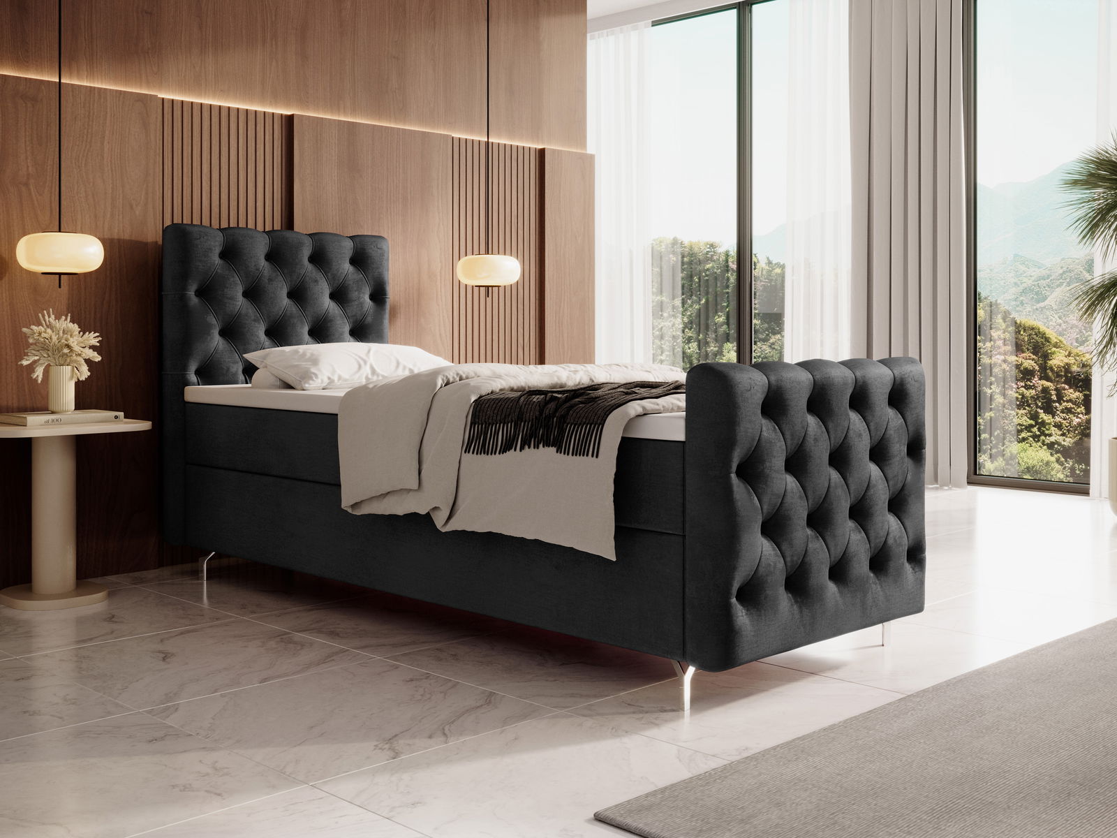 Pat de o persoană 90 cm Clinton Bonell (Negru) (cu somieră, fără sp. depozitare)