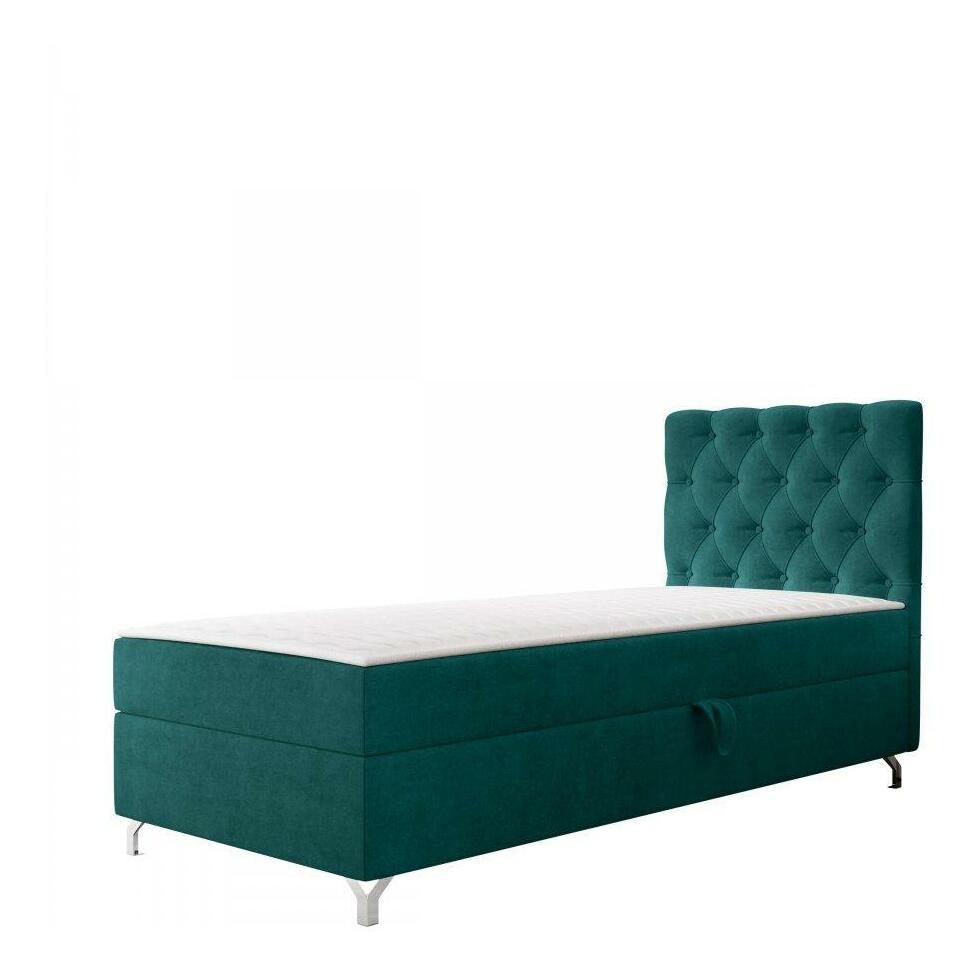 Pat de o persoană 90 cm Jenaks 1 (turcoaz) (cu somieră și saltea) (cu sp. depozitare) (S)