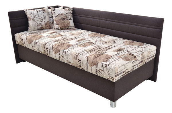 Pat de o persoană 90 cm Porfirio (Bej + Maro) (cu somieră și saltea) (S)