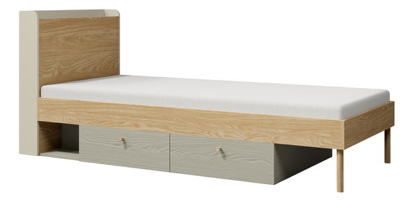 - Pat de o persoană 90x200 cm Yoda 13 (bej deschis + stejar uleios + eucaliptus) (S)