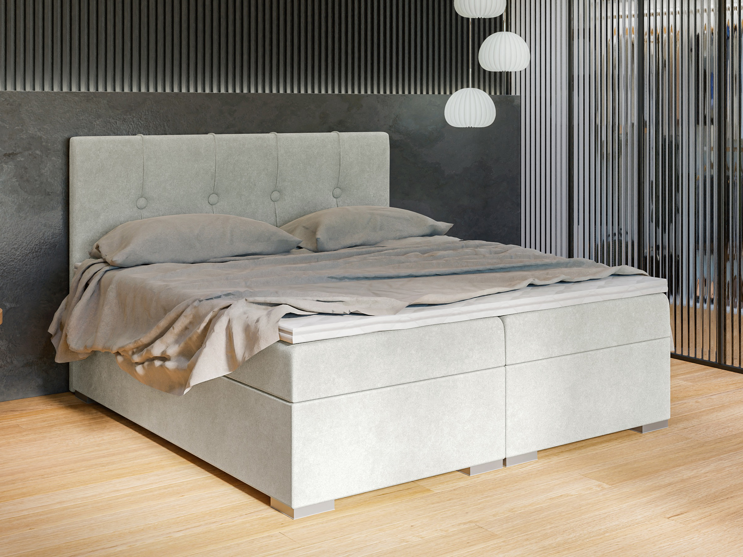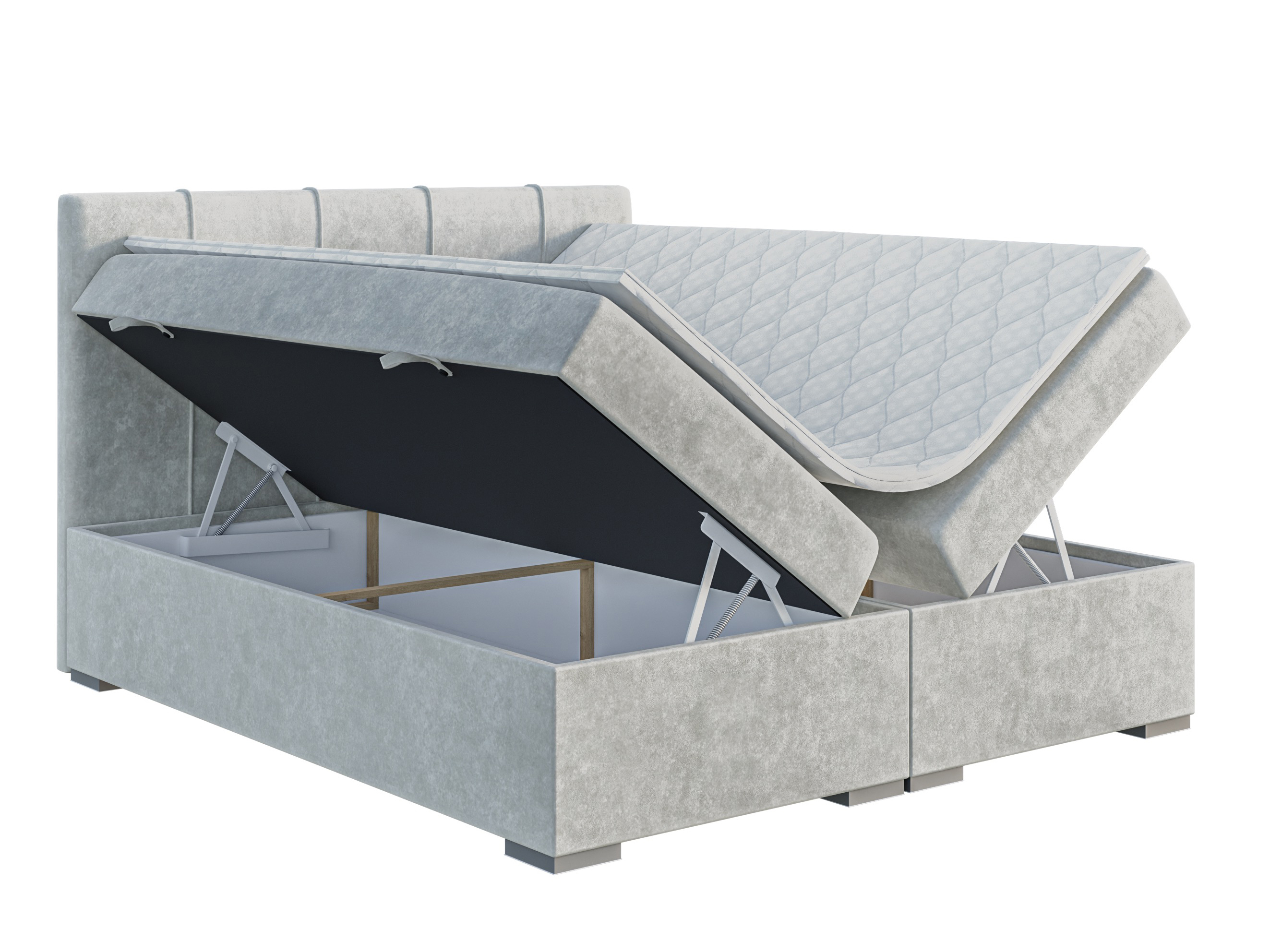 Pat de o persoană boxspring 120 cm Ruffy (gri deschis) (cu saltea și sp. depozitare)
