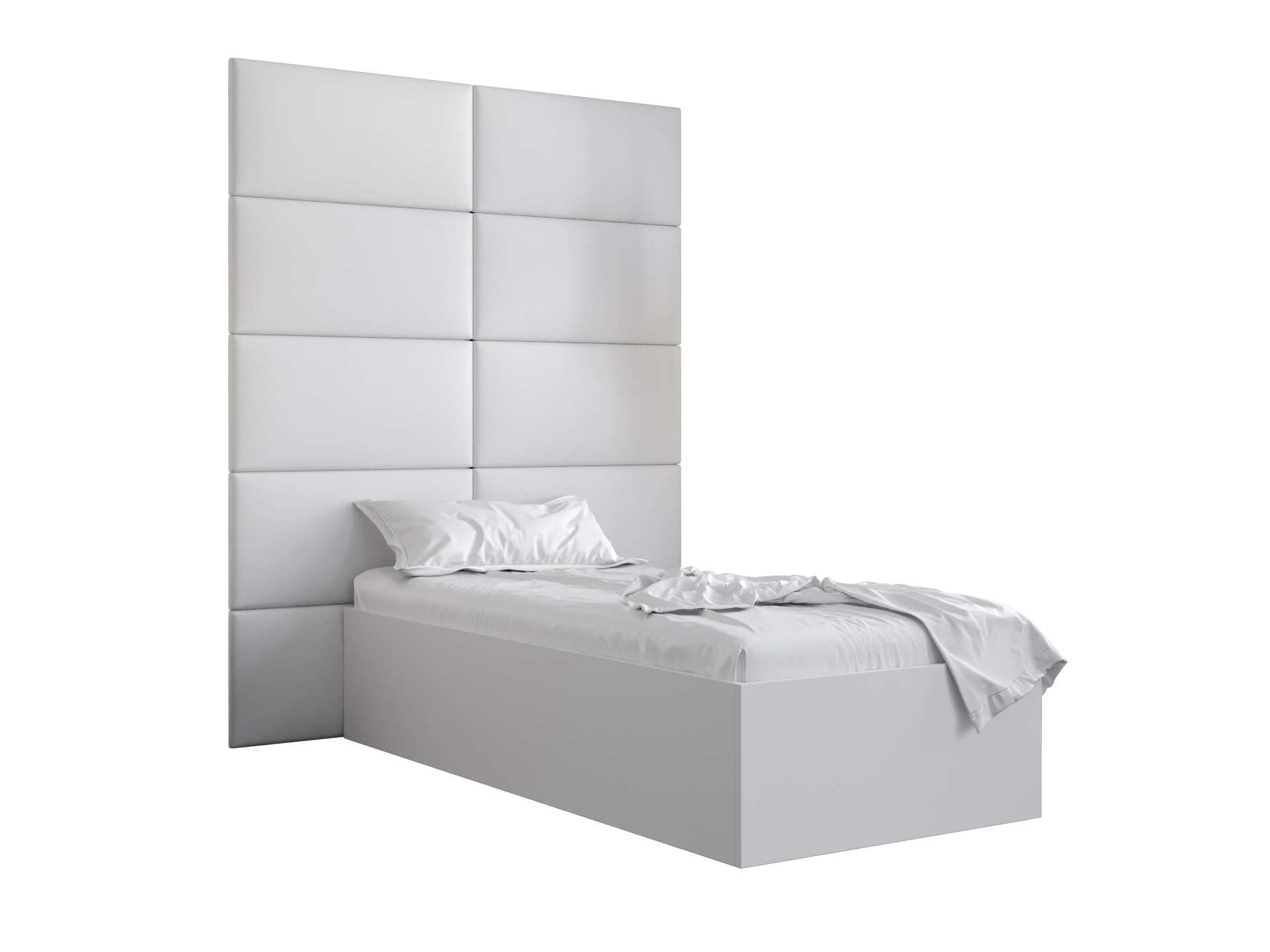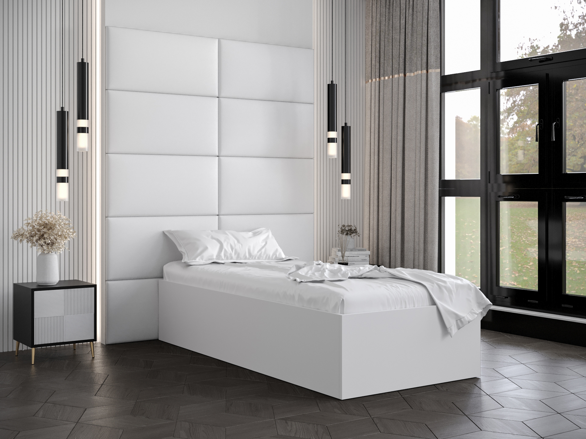 Pat de o persoană cu tăblie tapițată 90 cm Brittany 1 (Alb mat + Alb) (cu somieră)