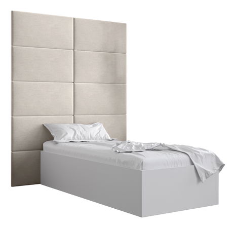 Pat de o persoană cu tăblie tapițată 90 cm Brittany 1 (Alb mat + crem) (cu somieră)