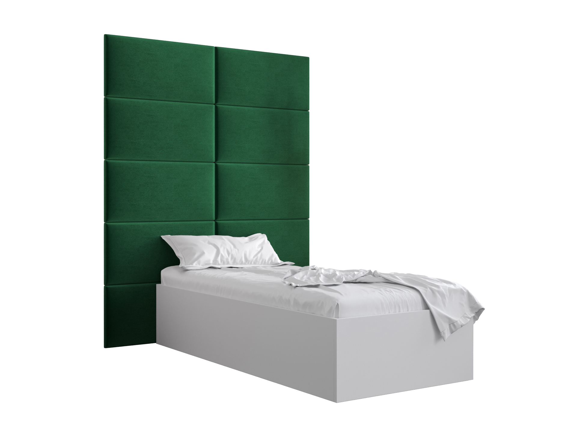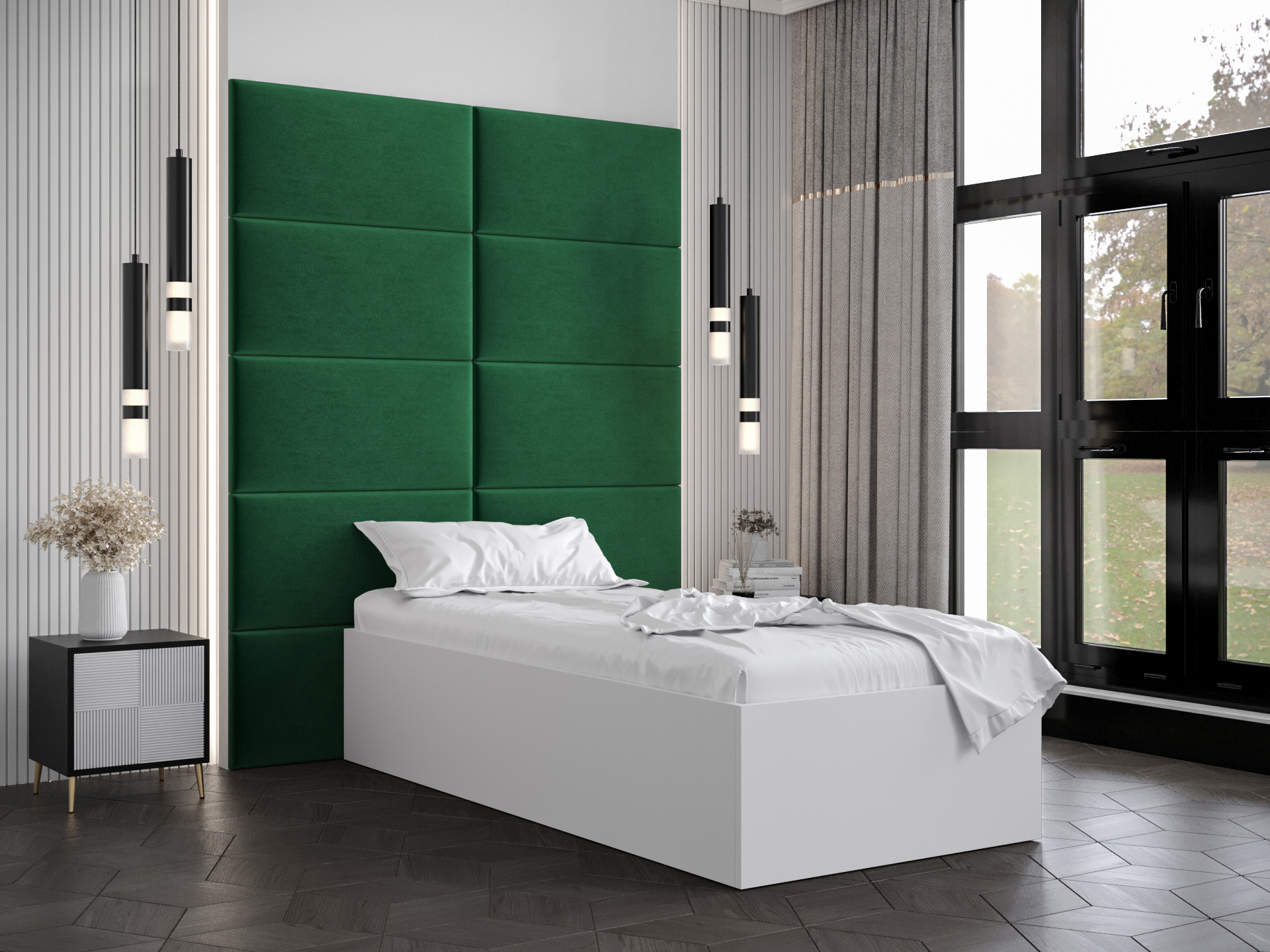 Pat de o persoană cu tăblie tapițată 90 cm Brittany 1 (Alb mat + verde) (cu somieră)
