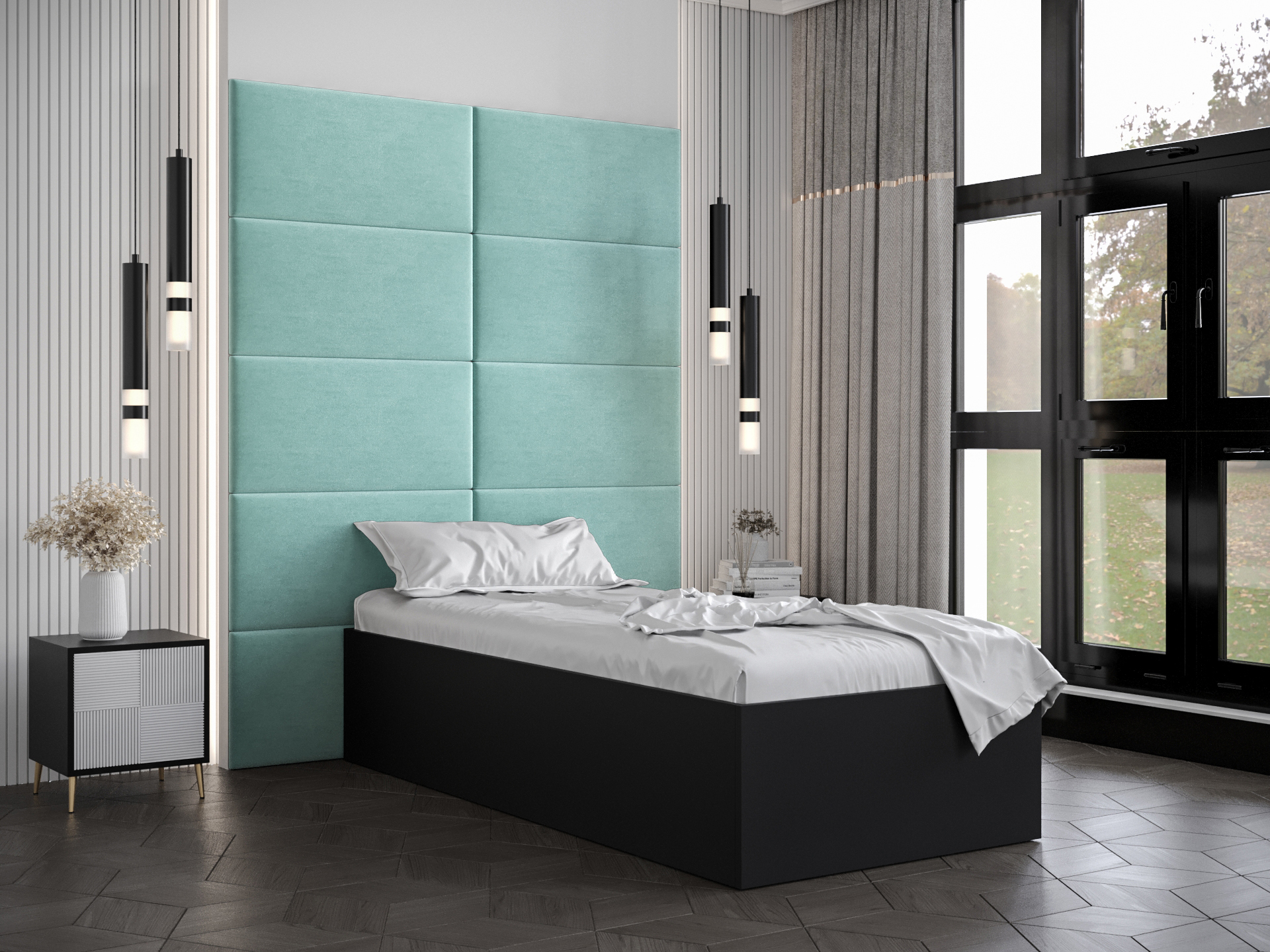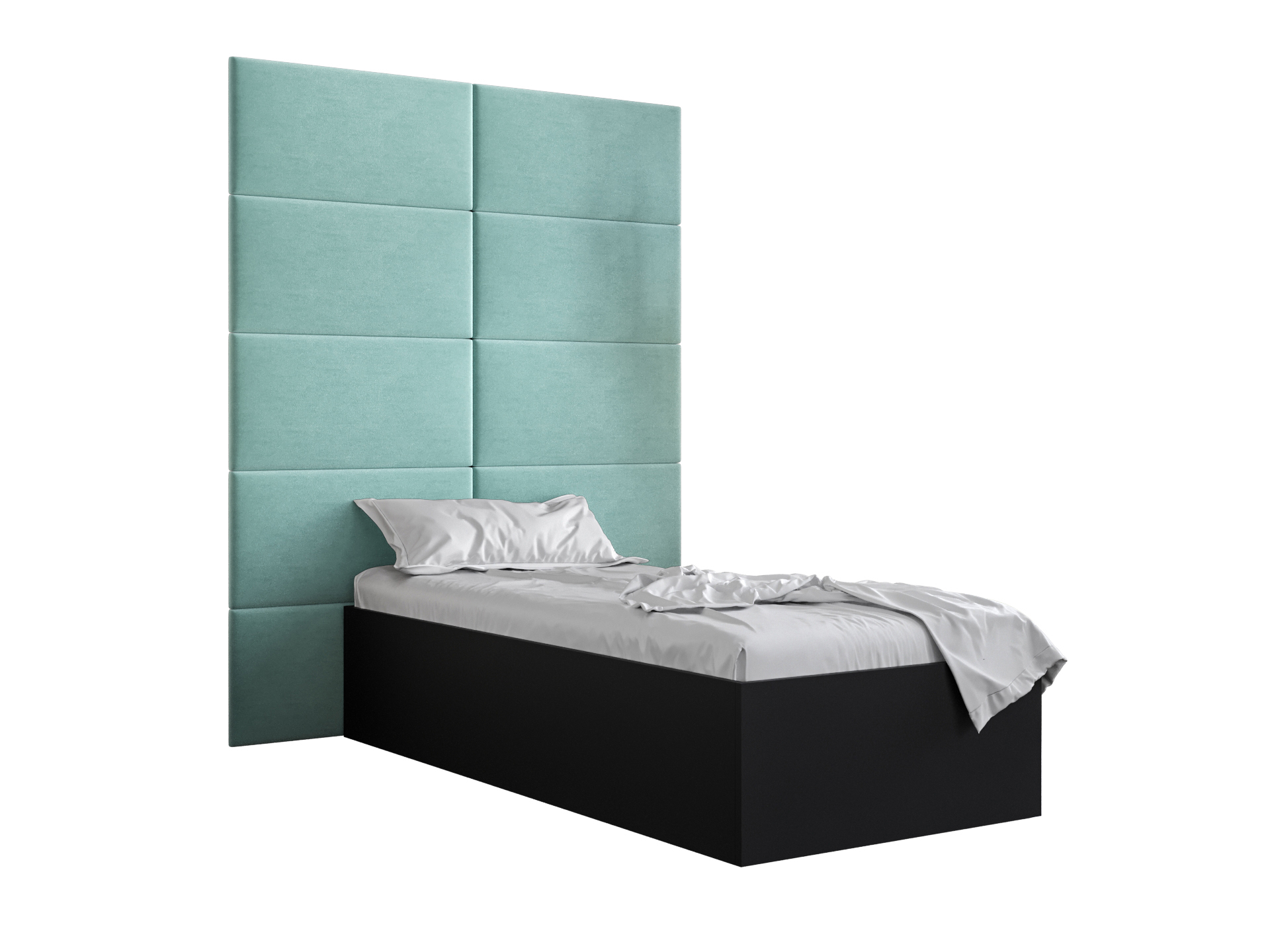 Pat de o persoană cu tăblie tapițată 90 cm Brittany 1 (Negru mat + mentă) (cu somieră)