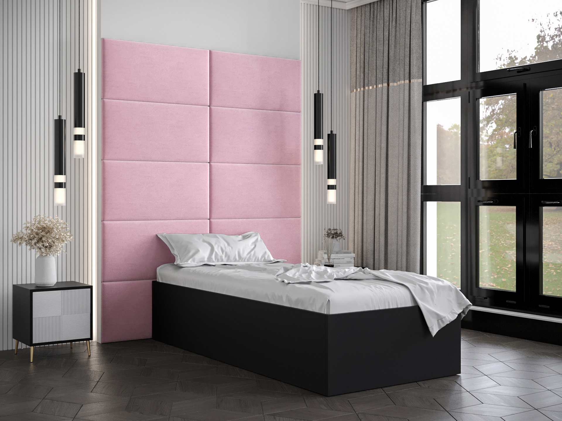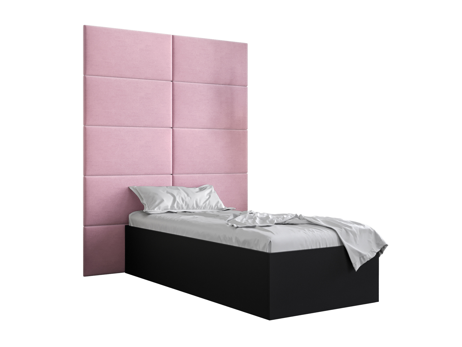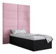 Pat de o persoană cu tăblie tapițată 90 cm Brittany 1 (Negru mat + roz) (cu somieră)