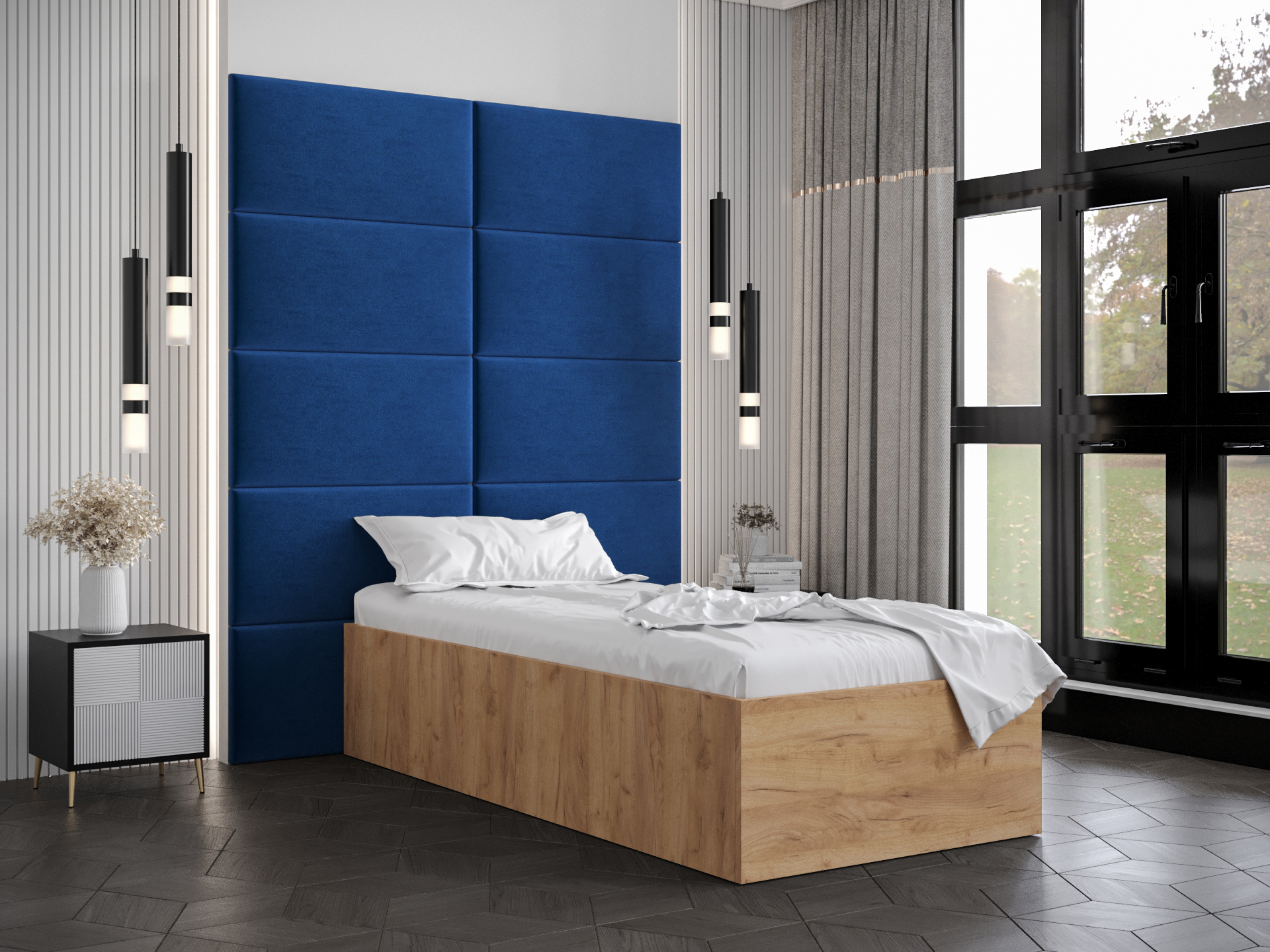 Pat de o persoană cu tăblie tapițată 90 cm Brittany 1 (Stejar craft auriu + albastru) (cu somieră)