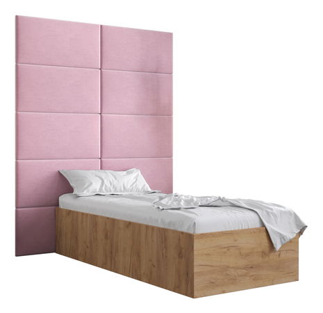 Pat de o persoană cu tăblie tapițată 90 cm Brittany 1 (Stejar craft auriu + roz) (cu somieră)