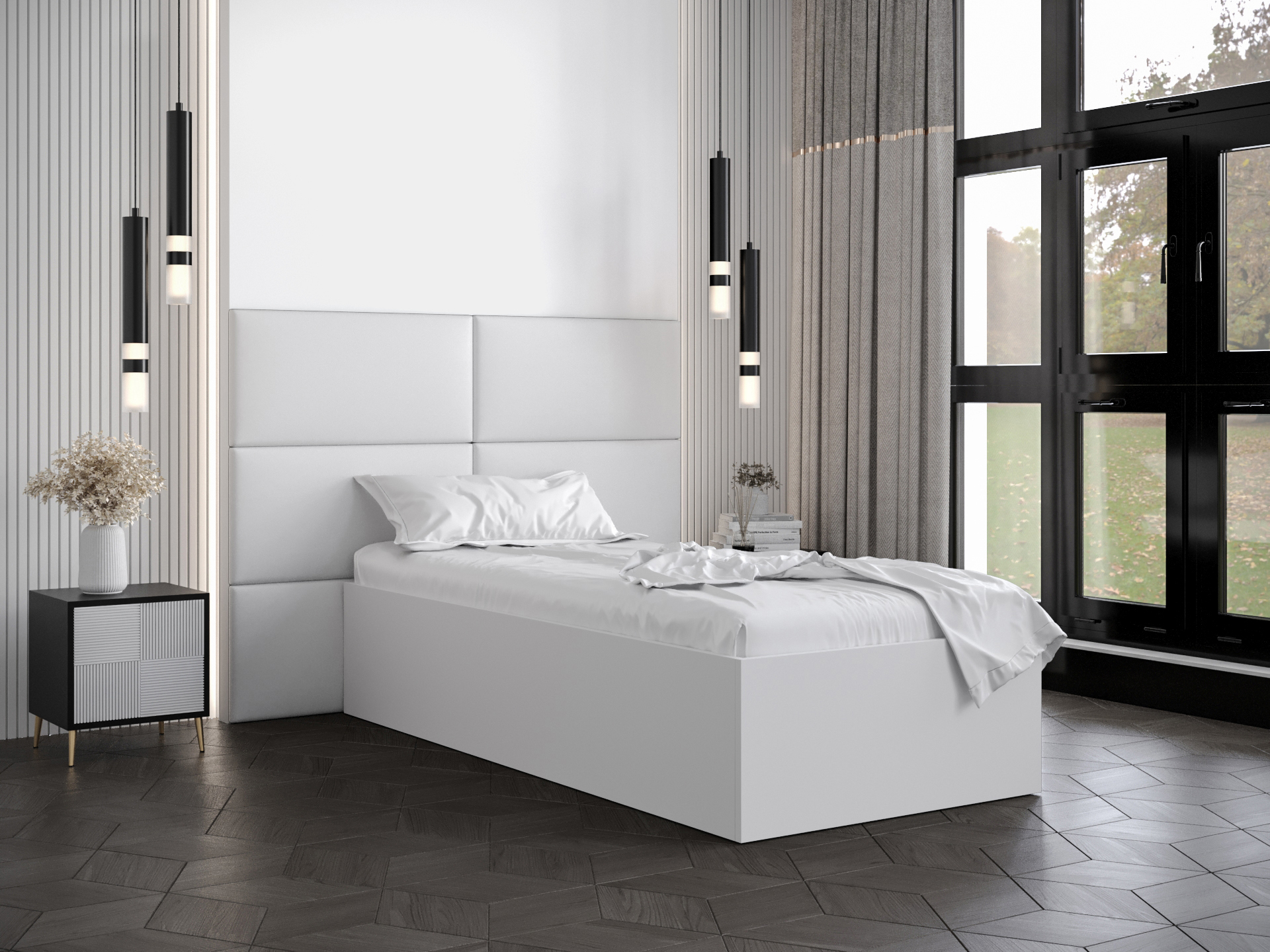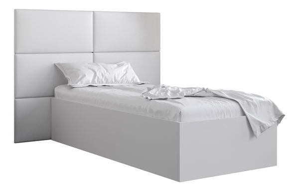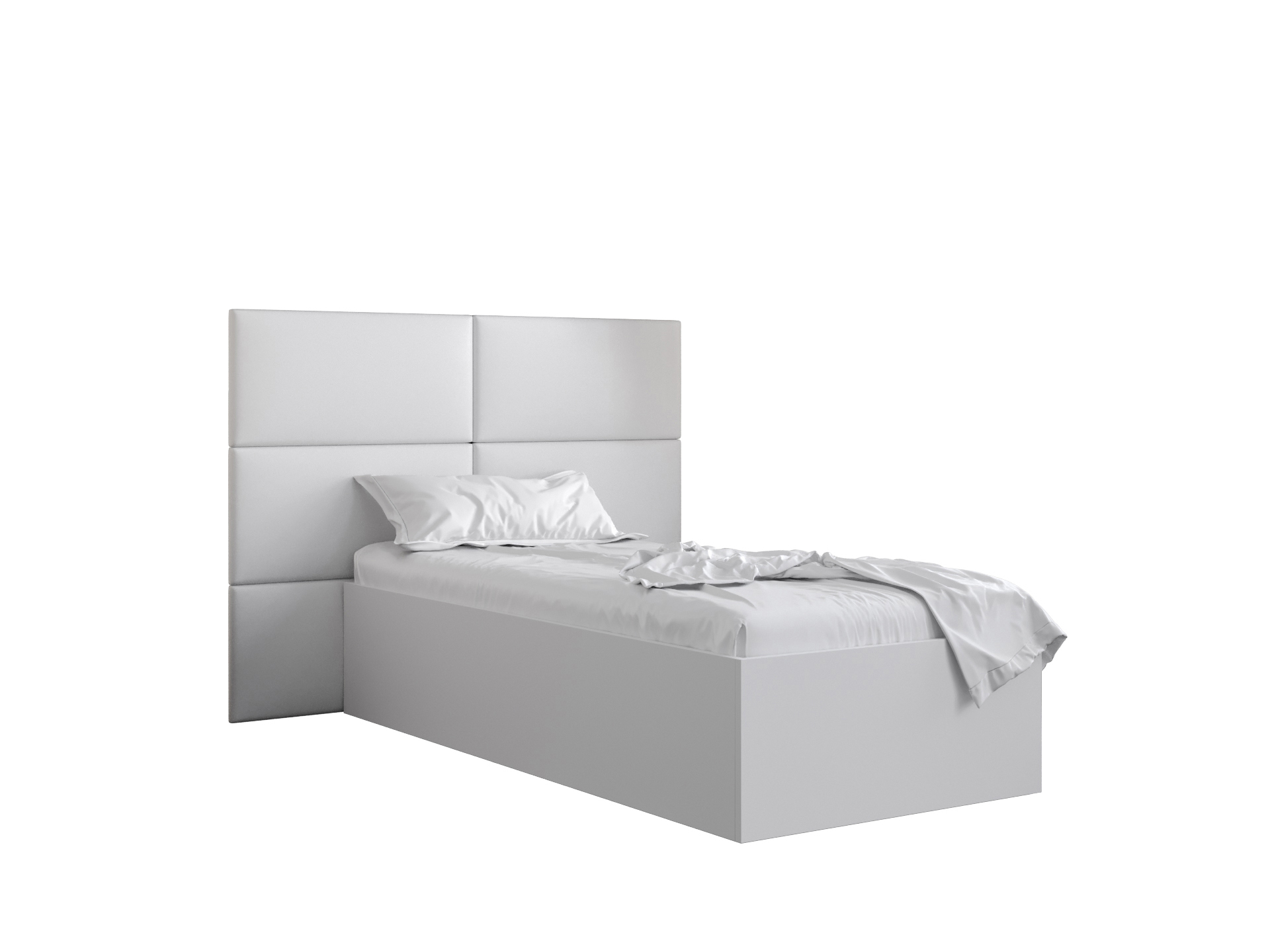 Pat de o persoană cu tăblie tapițată 90 cm Brittany 2 (Alb mat + Alb) (cu somieră)