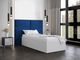 Pat de o persoană cu tăblie tapițată 90 cm Brittany 2 (Alb mat + albastru) (cu somieră)