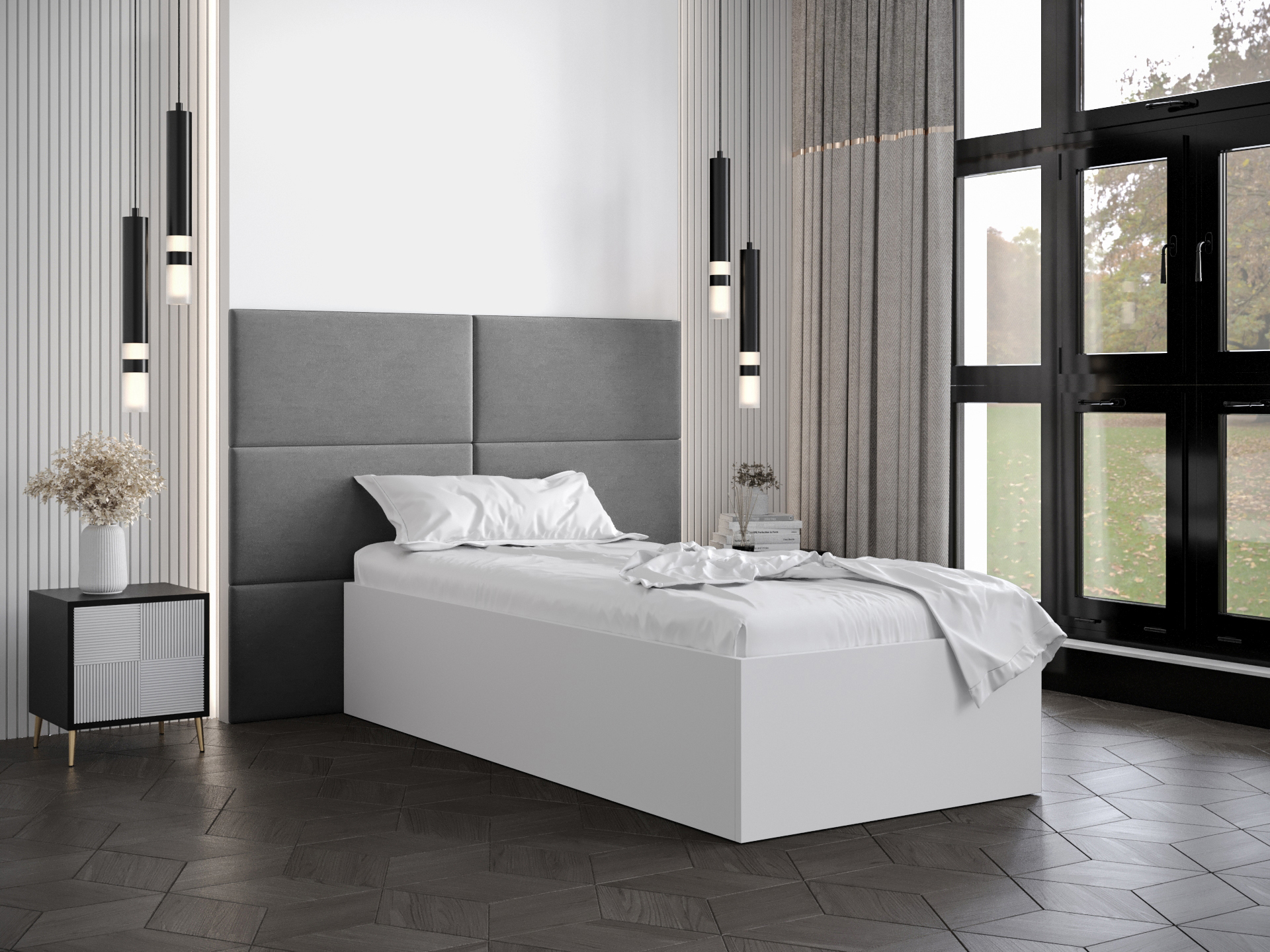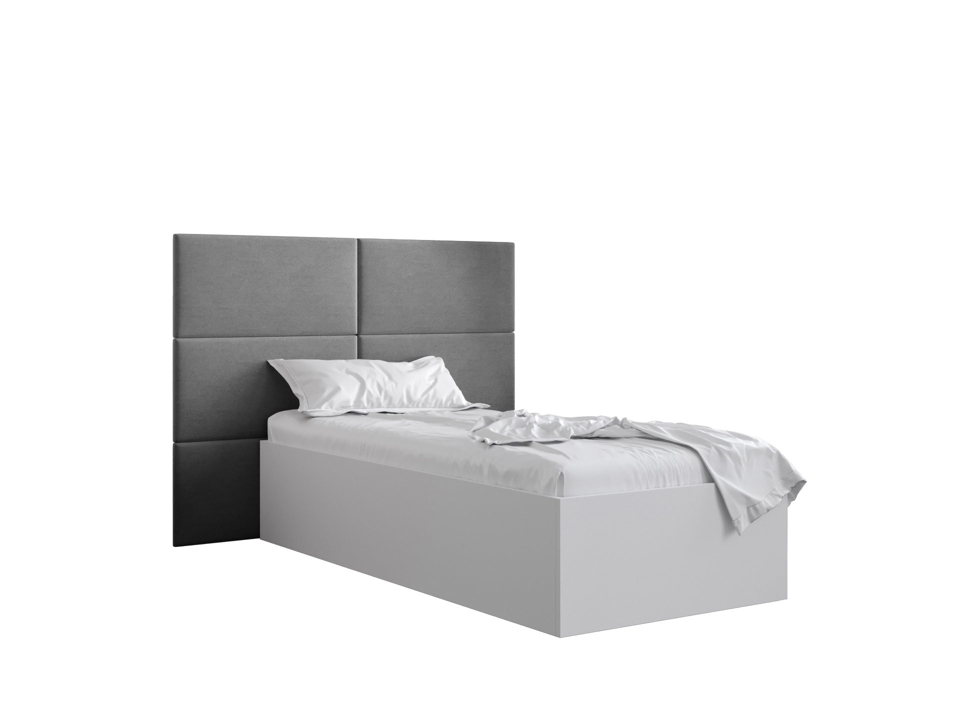 Pat de o persoană cu tăblie tapițată 90 cm Brittany 2 (Alb mat + gri) (cu somieră)