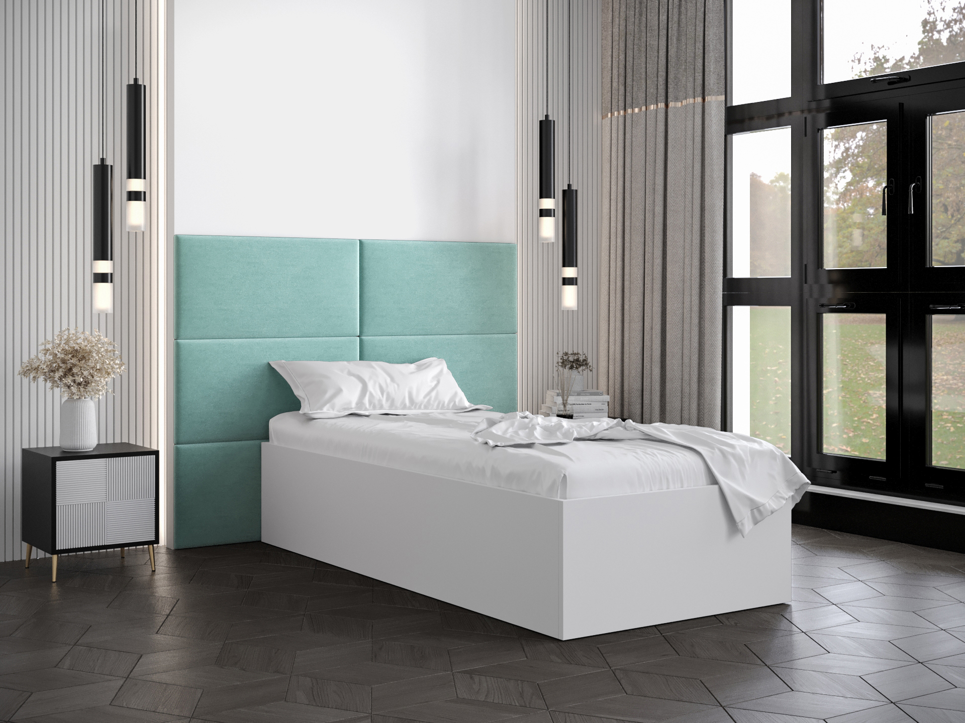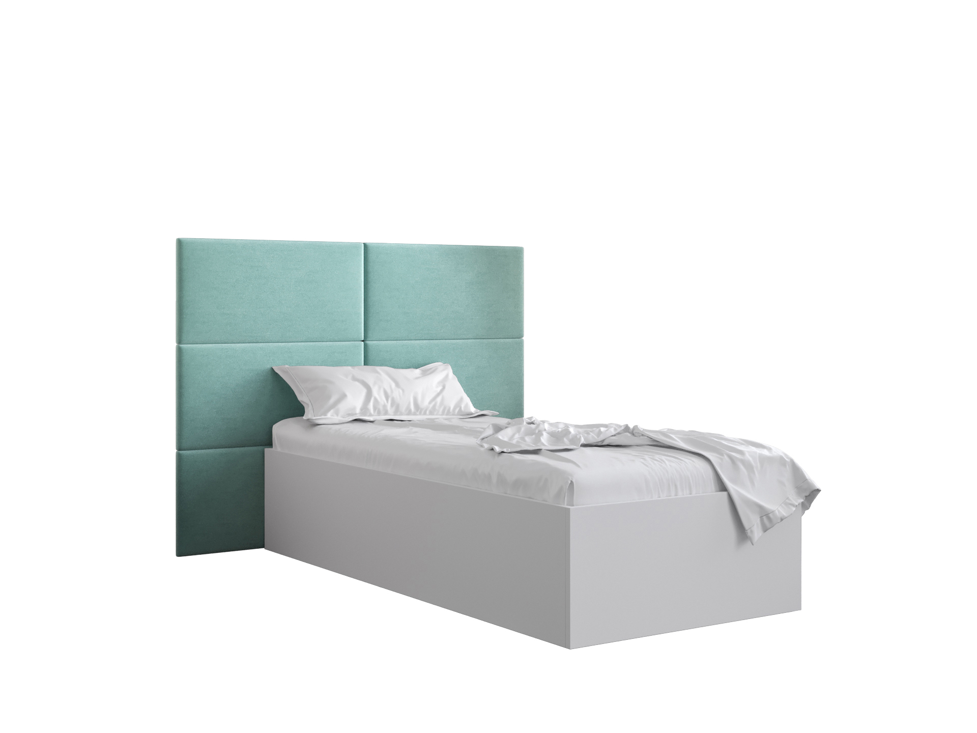 Pat de o persoană cu tăblie tapițată 90 cm Brittany 2 (Alb mat + mentă) (cu somieră)