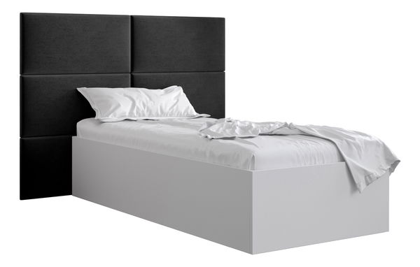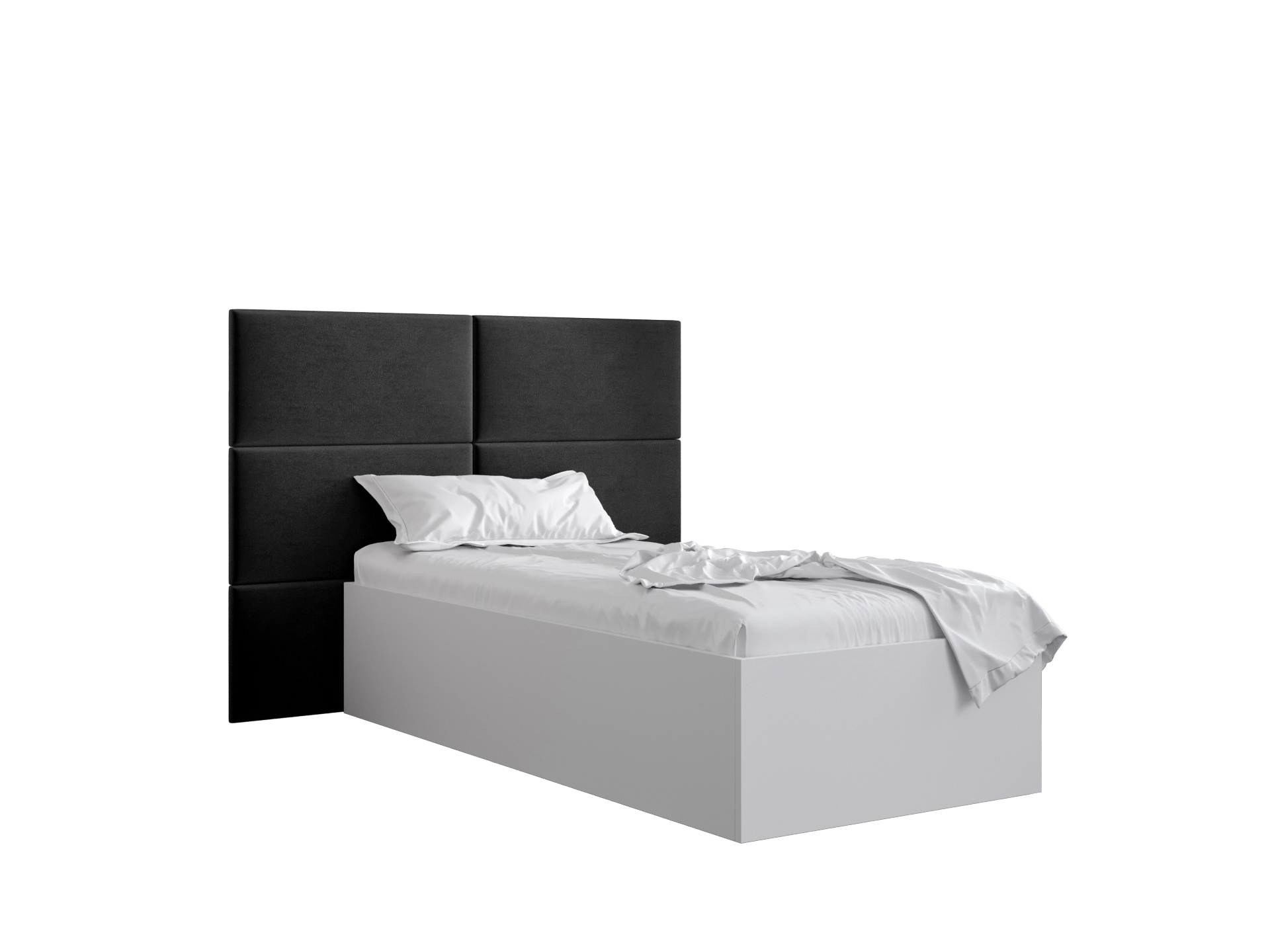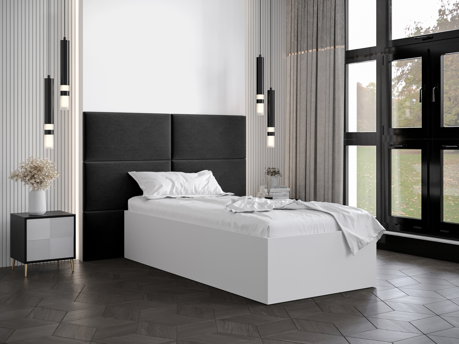 Pat de o persoană cu tăblie tapițată 90 cm Brittany 2 (Alb mat + Negru) (cu somieră)