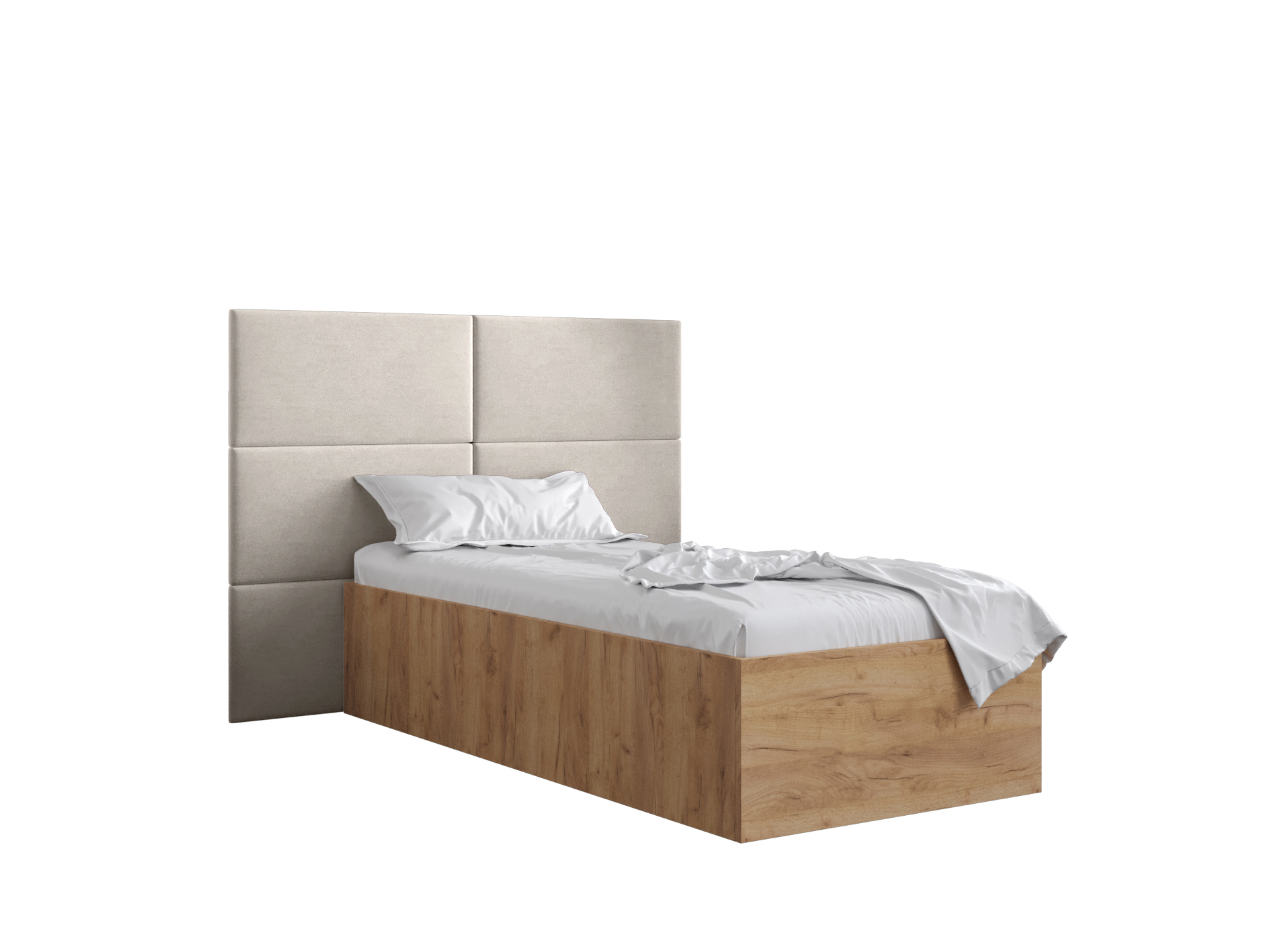 Pat de o persoană cu tăblie tapițată 90 cm Brittany 2 (Stejar craft auriu + crem) (cu somieră)