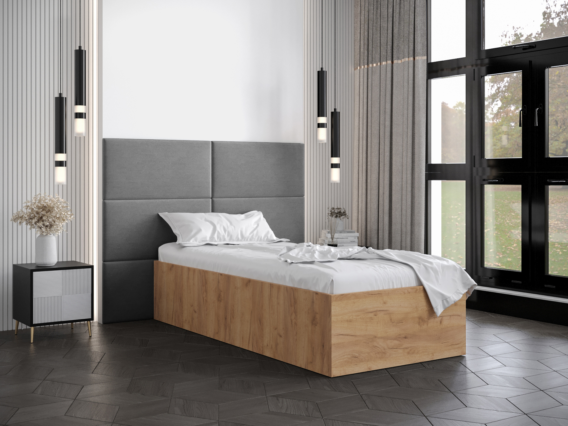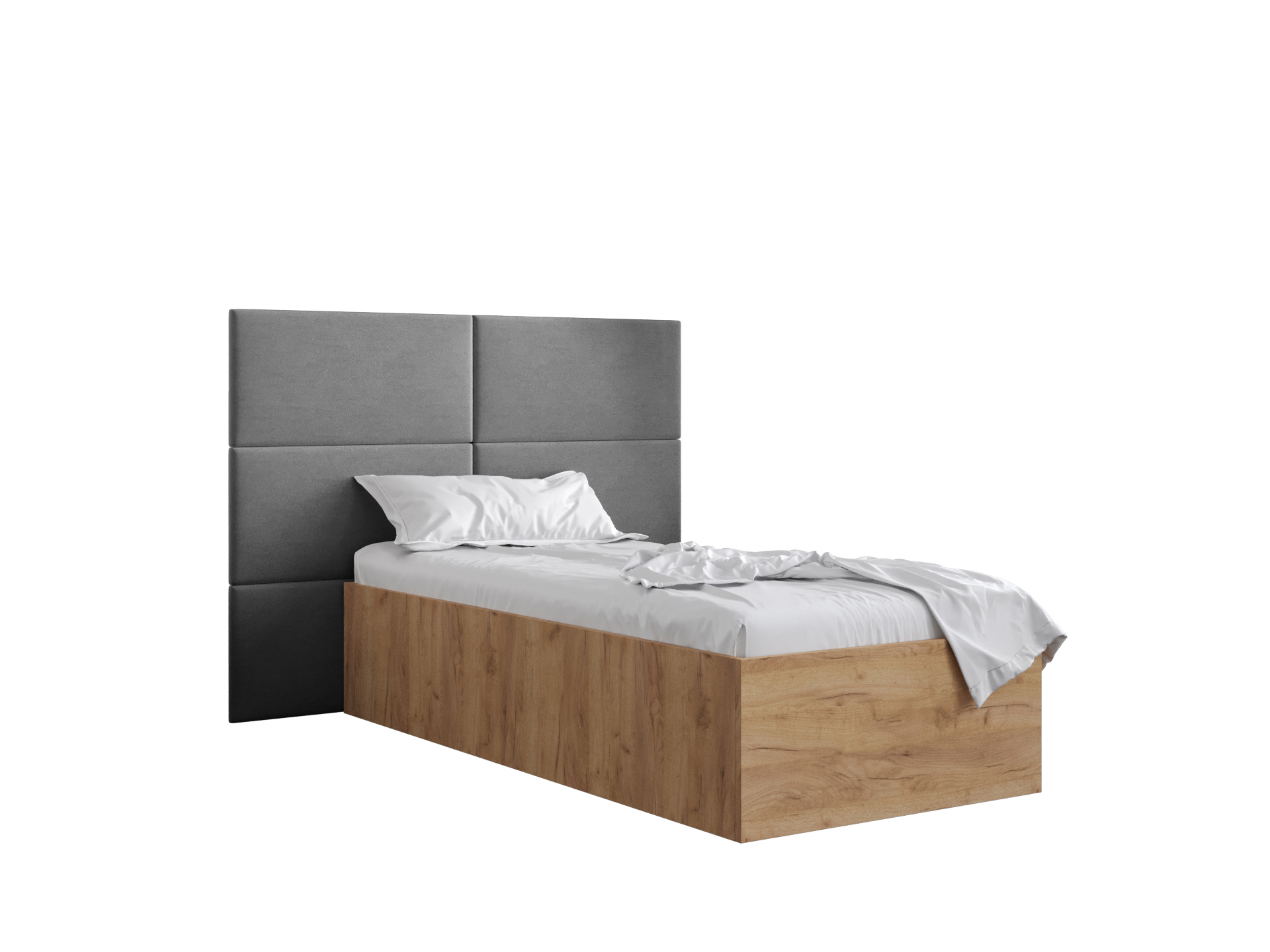 Pat de o persoană cu tăblie tapițată 90 cm Brittany 2 (Stejar craft auriu + gri) (cu somieră)