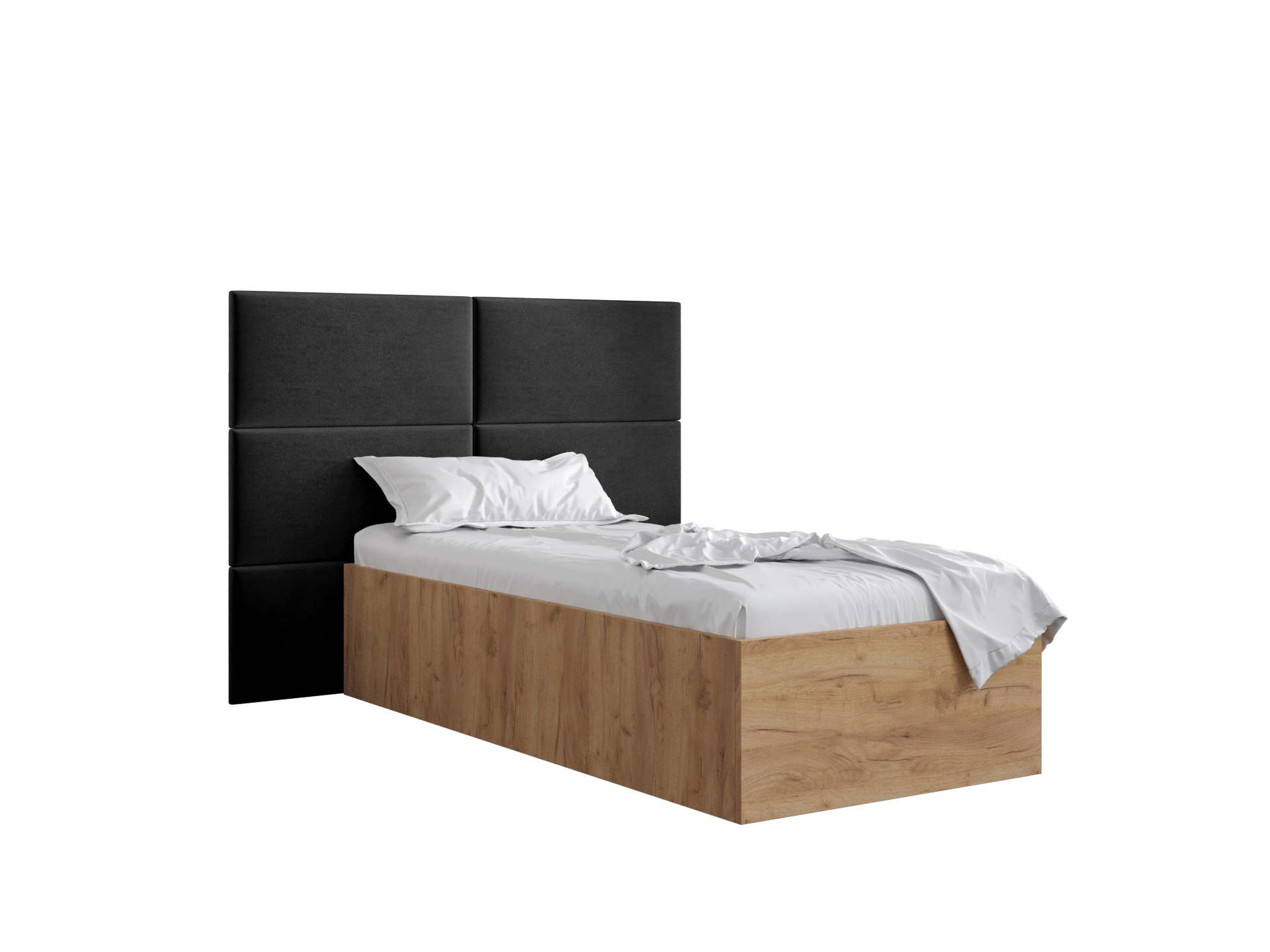 Pat de o persoană cu tăblie tapițată 90 cm Brittany 2 (Stejar craft auriu + Negru) (cu somieră)
