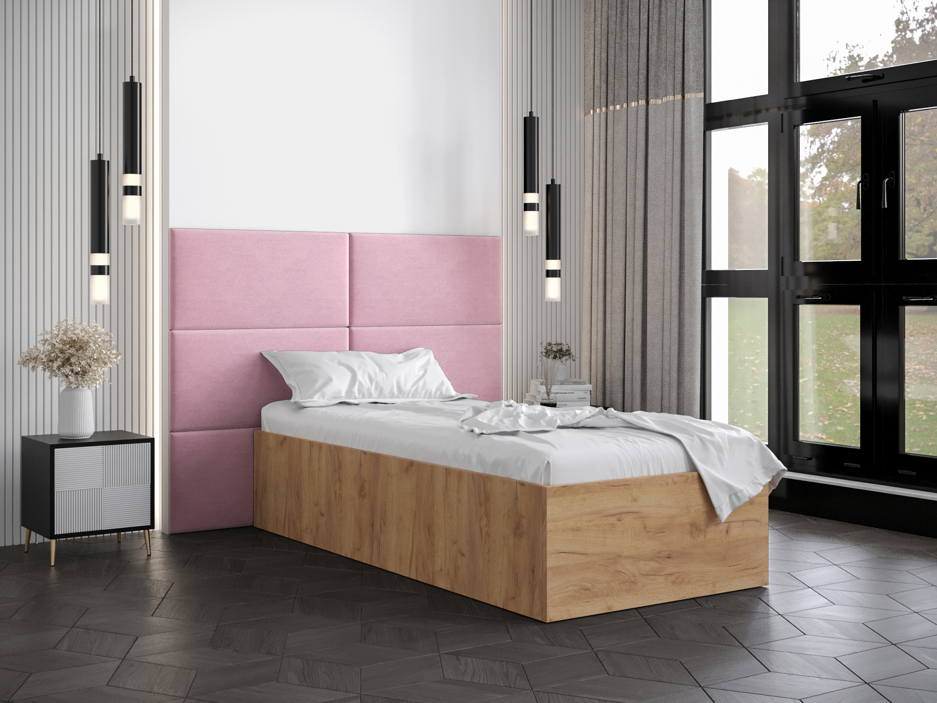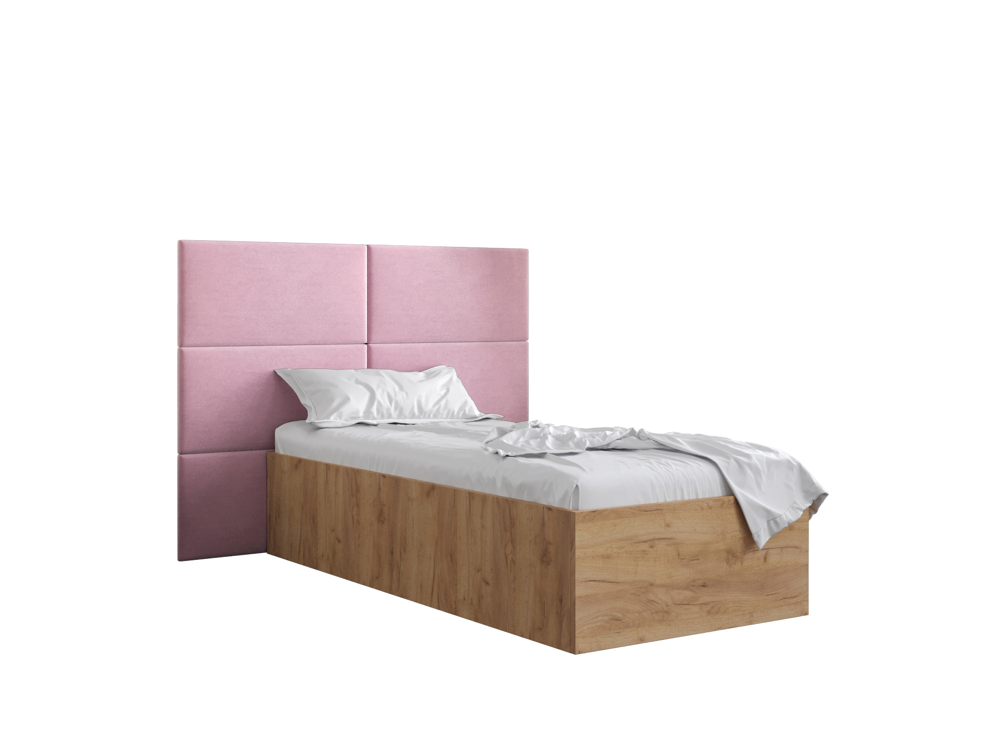 Pat de o persoană cu tăblie tapițată 90 cm Brittany 2 (Stejar craft auriu + roz) (cu somieră)