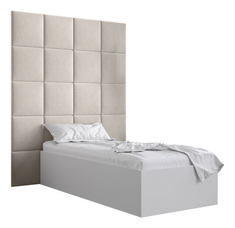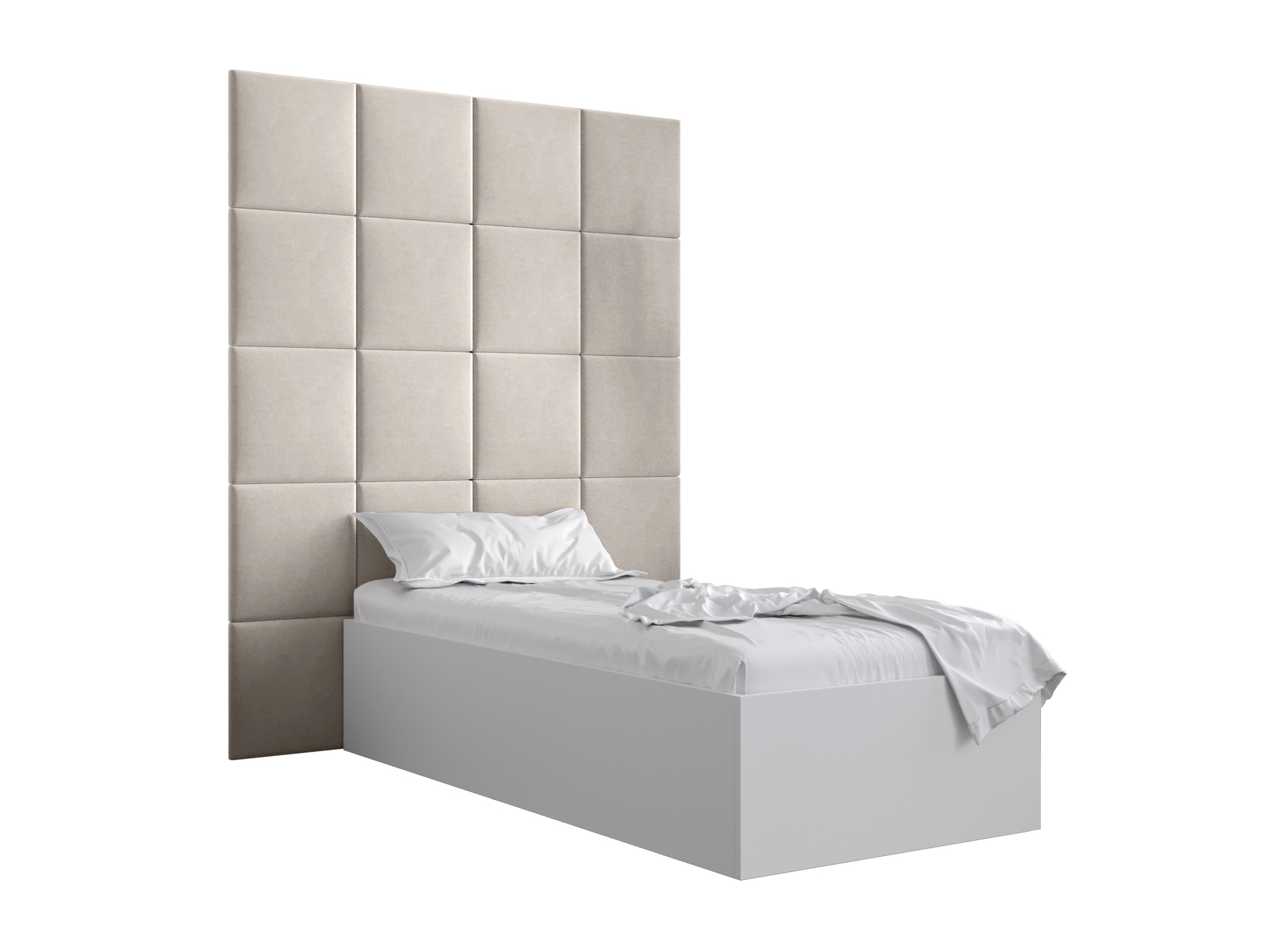 Pat de o persoană cu tăblie tapițată 90 cm Brittany 3 (Alb mat + crem) (cu somieră)