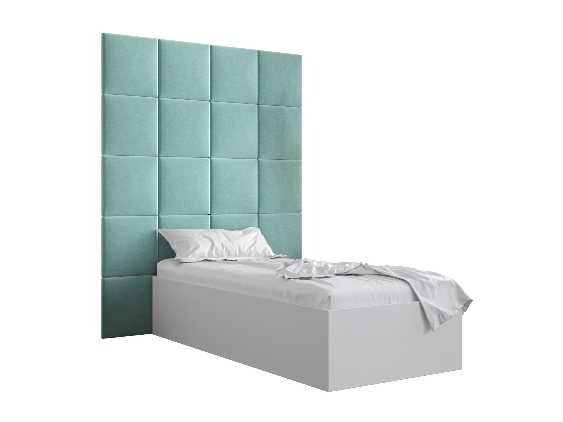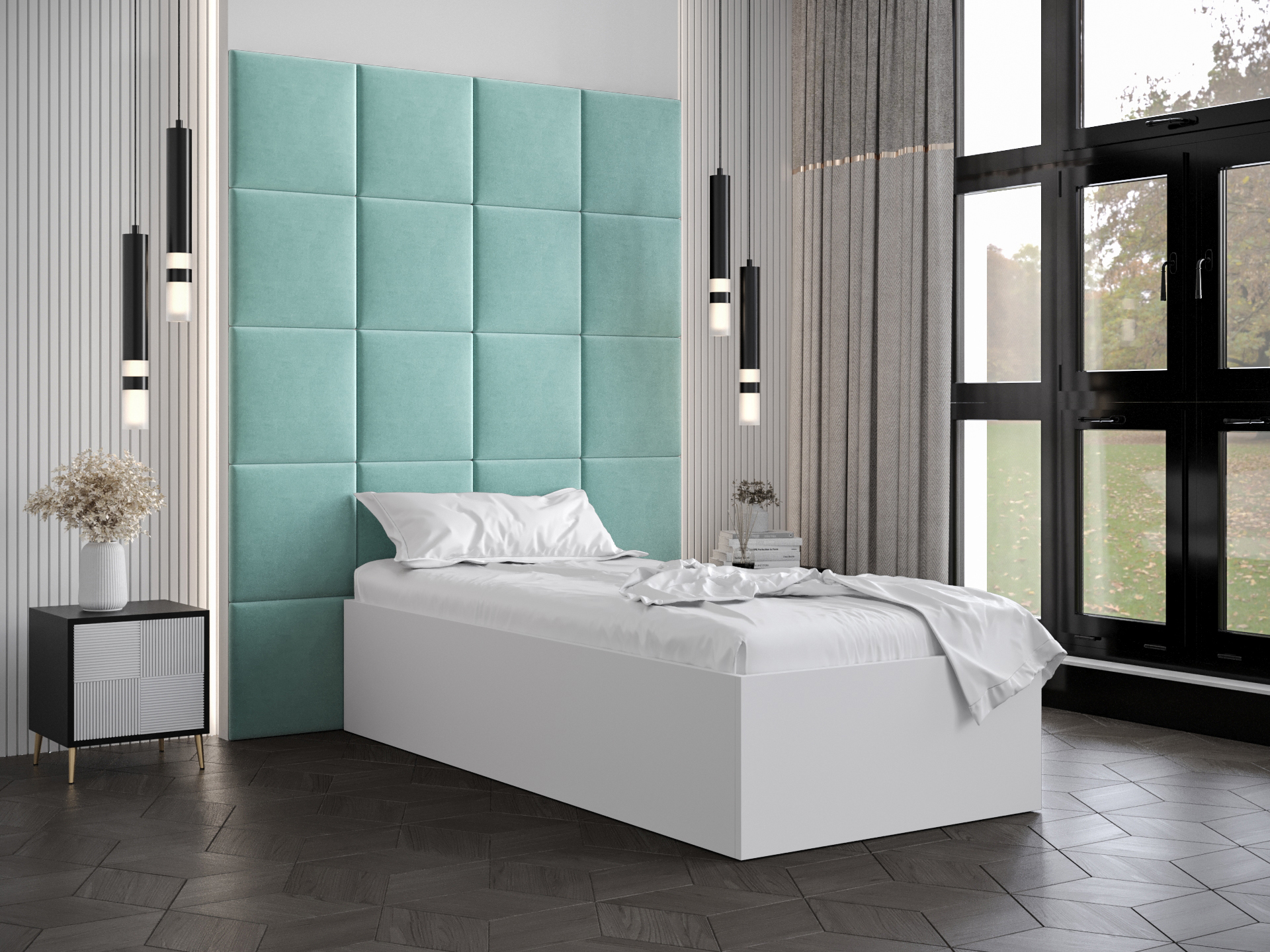 Pat de o persoană cu tăblie tapițată 90 cm Brittany 3 (Alb mat + mentă) (cu somieră)