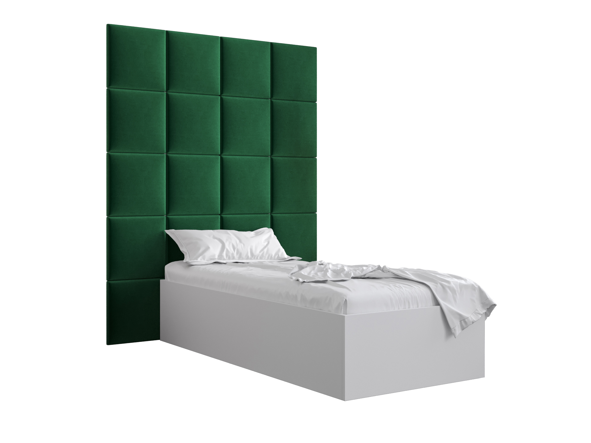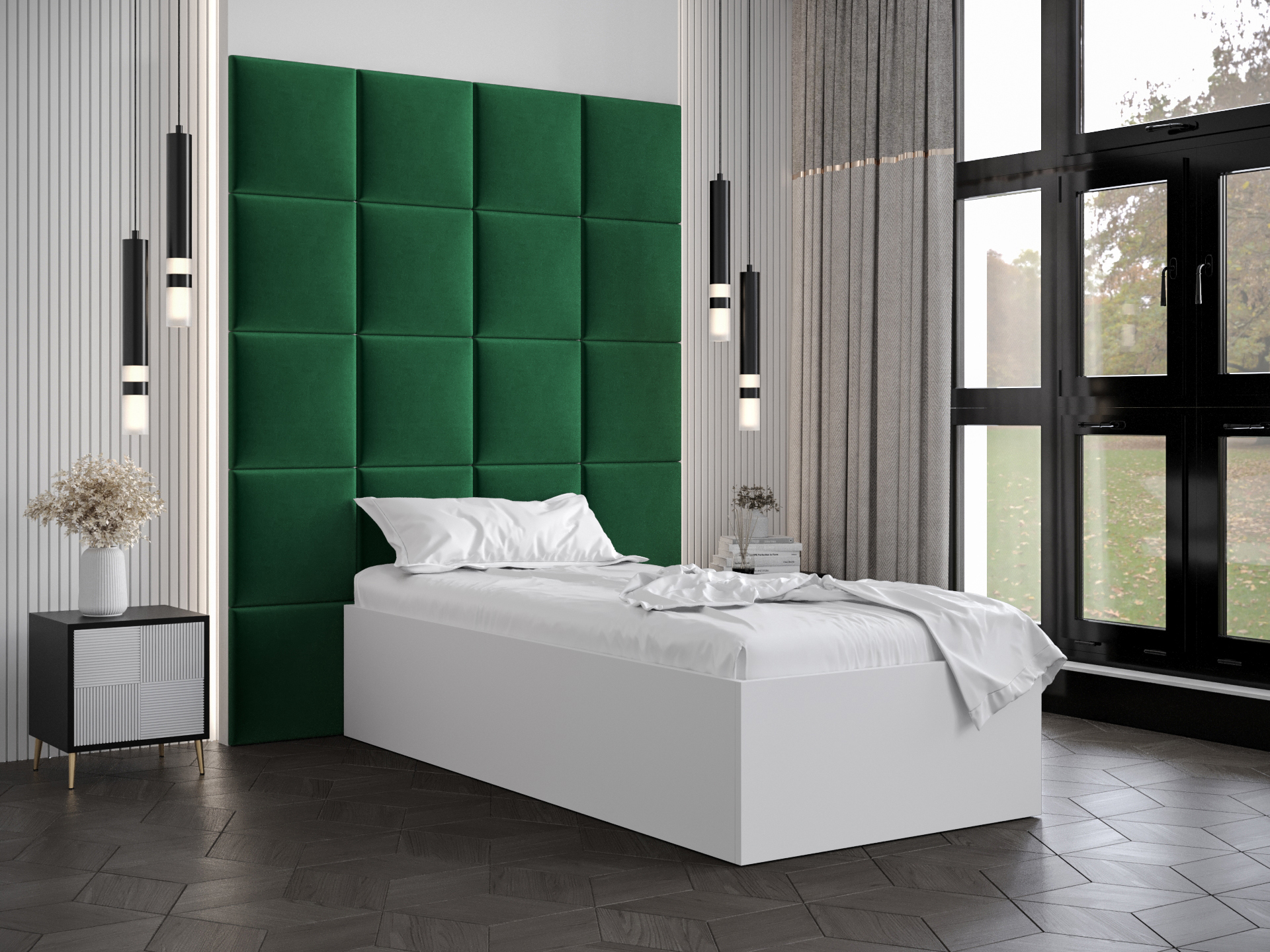 Pat de o persoană cu tăblie tapițată 90 cm Brittany 3 (Alb mat + verde) (cu somieră)