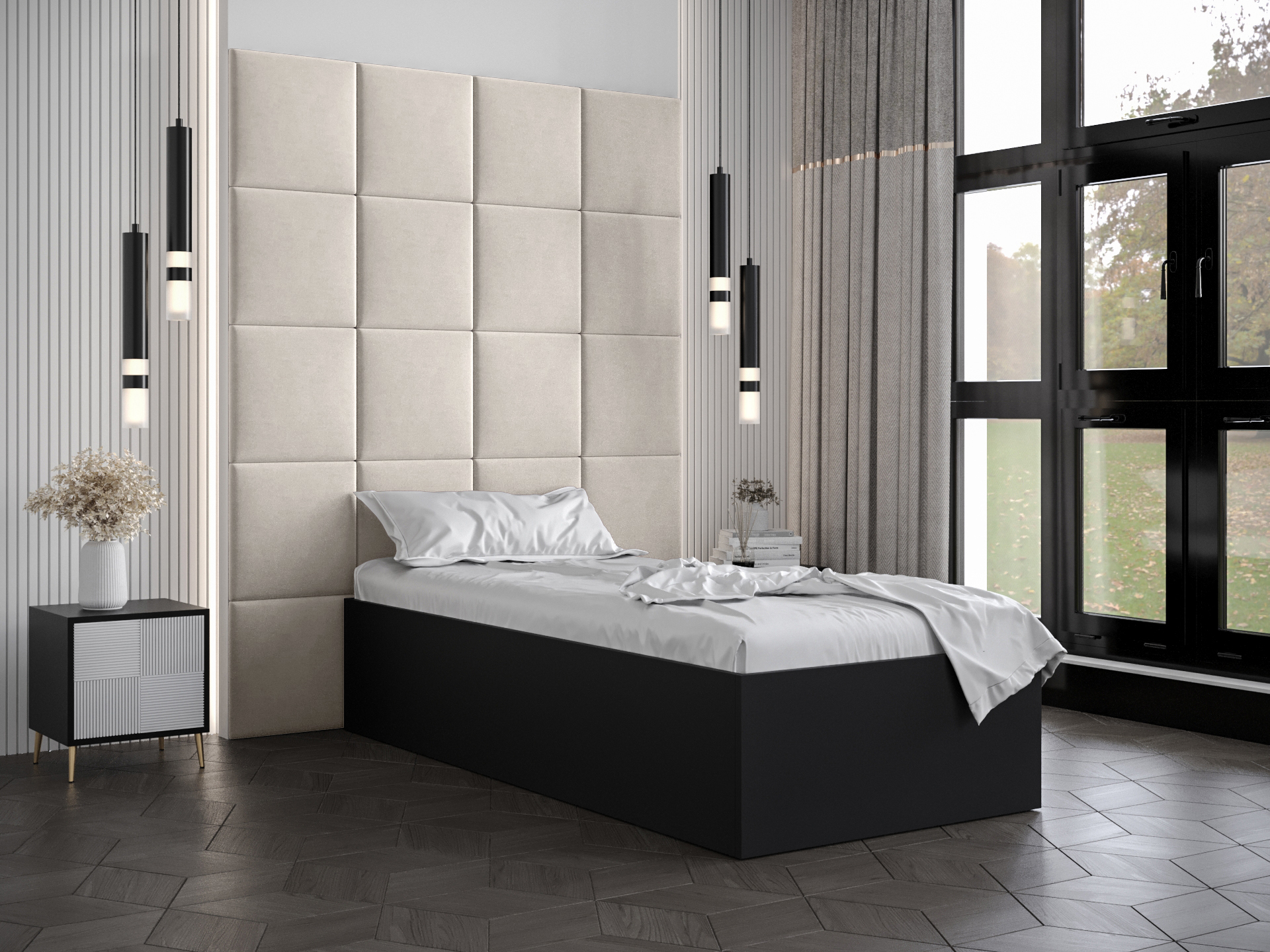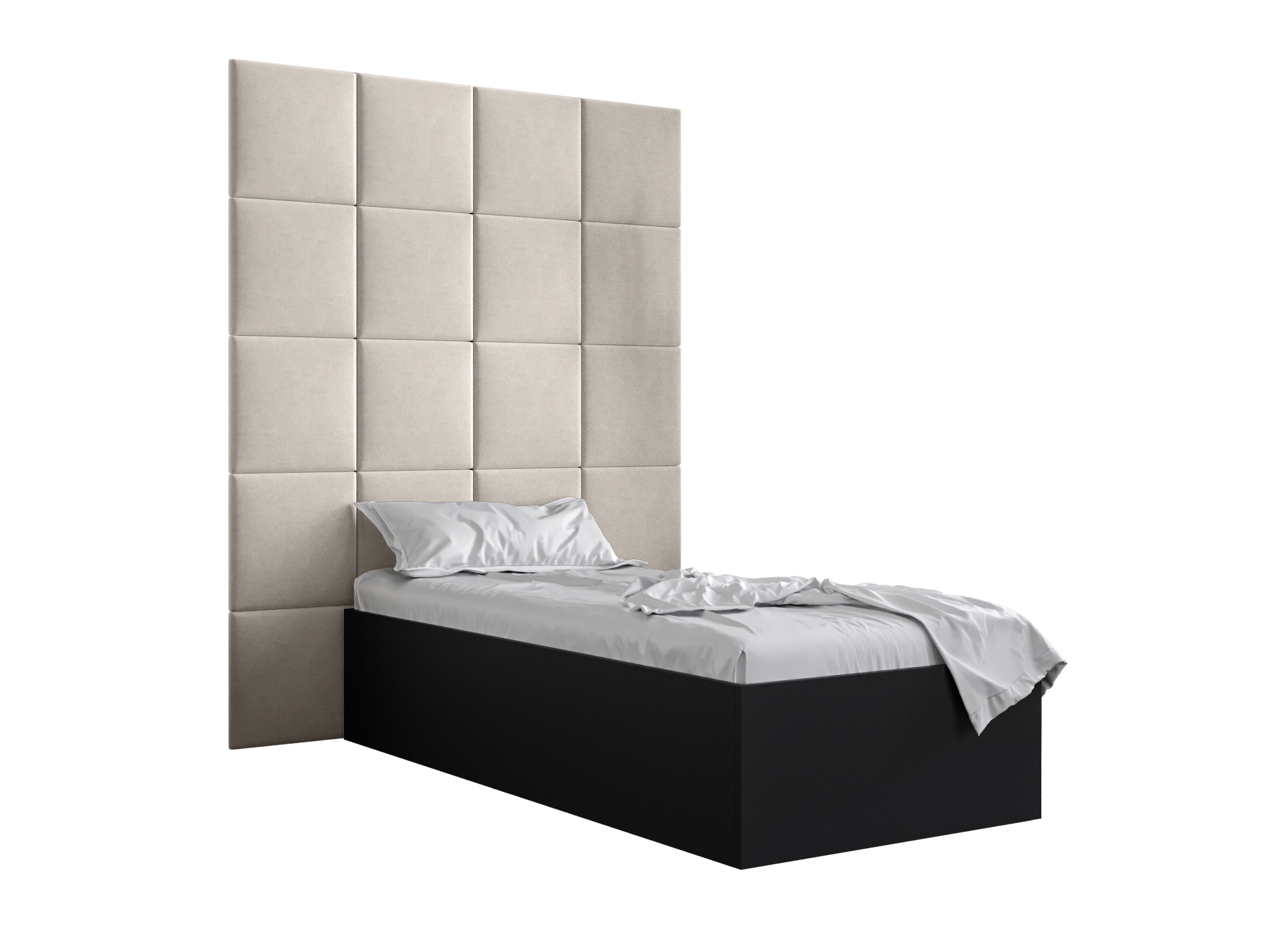 Pat de o persoană cu tăblie tapițată 90 cm Brittany 3 (Negru mat + crem) (cu somieră)