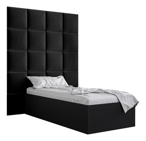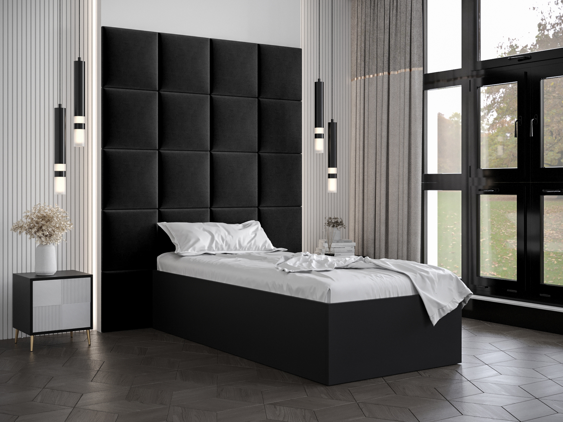 Pat de o persoană cu tăblie tapițată 90 cm Brittany 3 (Negru mat + Negru) (cu somieră)