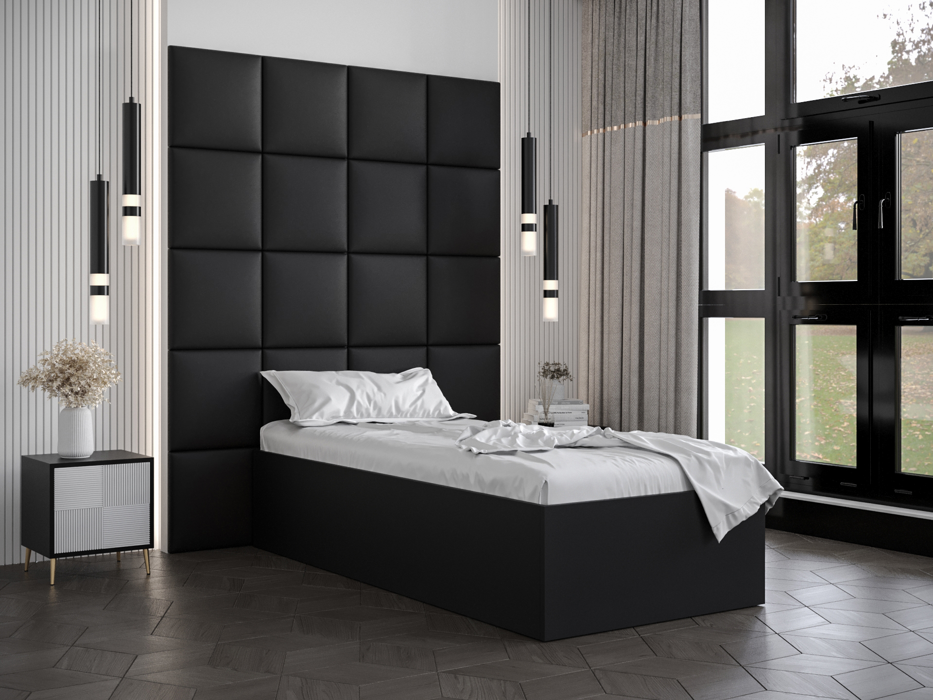 Pat de o persoană cu tăblie tapițată 90 cm Brittany 3 (Negru mat + Negru) (cu somieră)