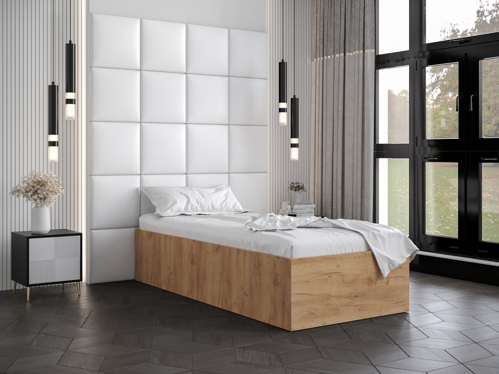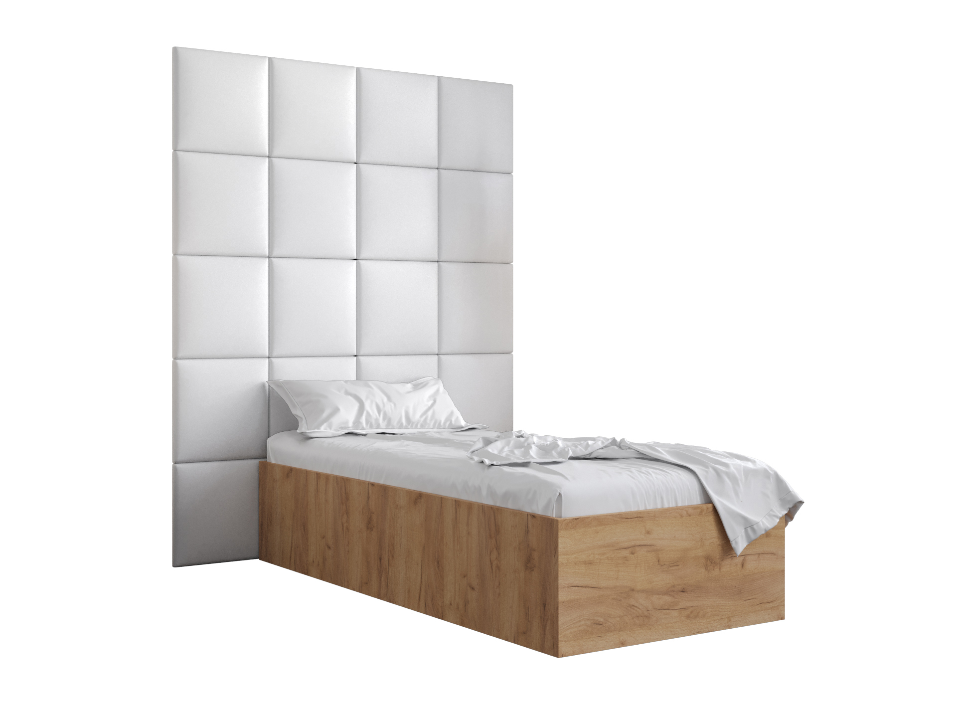 Pat de o persoană cu tăblie tapițată 90 cm Brittany 3 (Stejar craft auriu + Alb) (cu somieră)