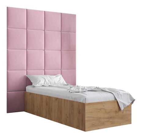Pat de o persoană cu tăblie tapițată 90 cm Brittany 3 (Stejar craft auriu + roz) (cu somieră)