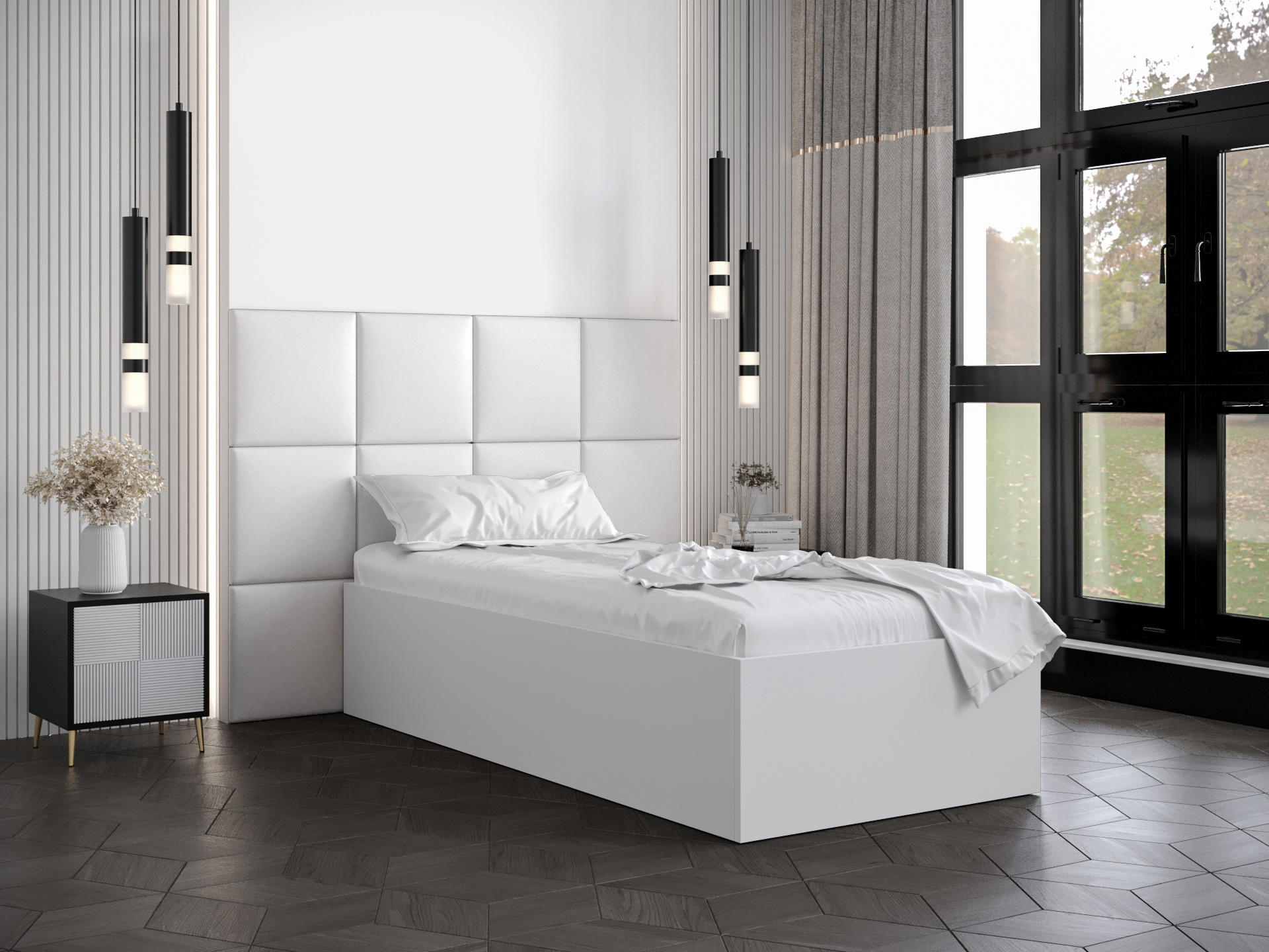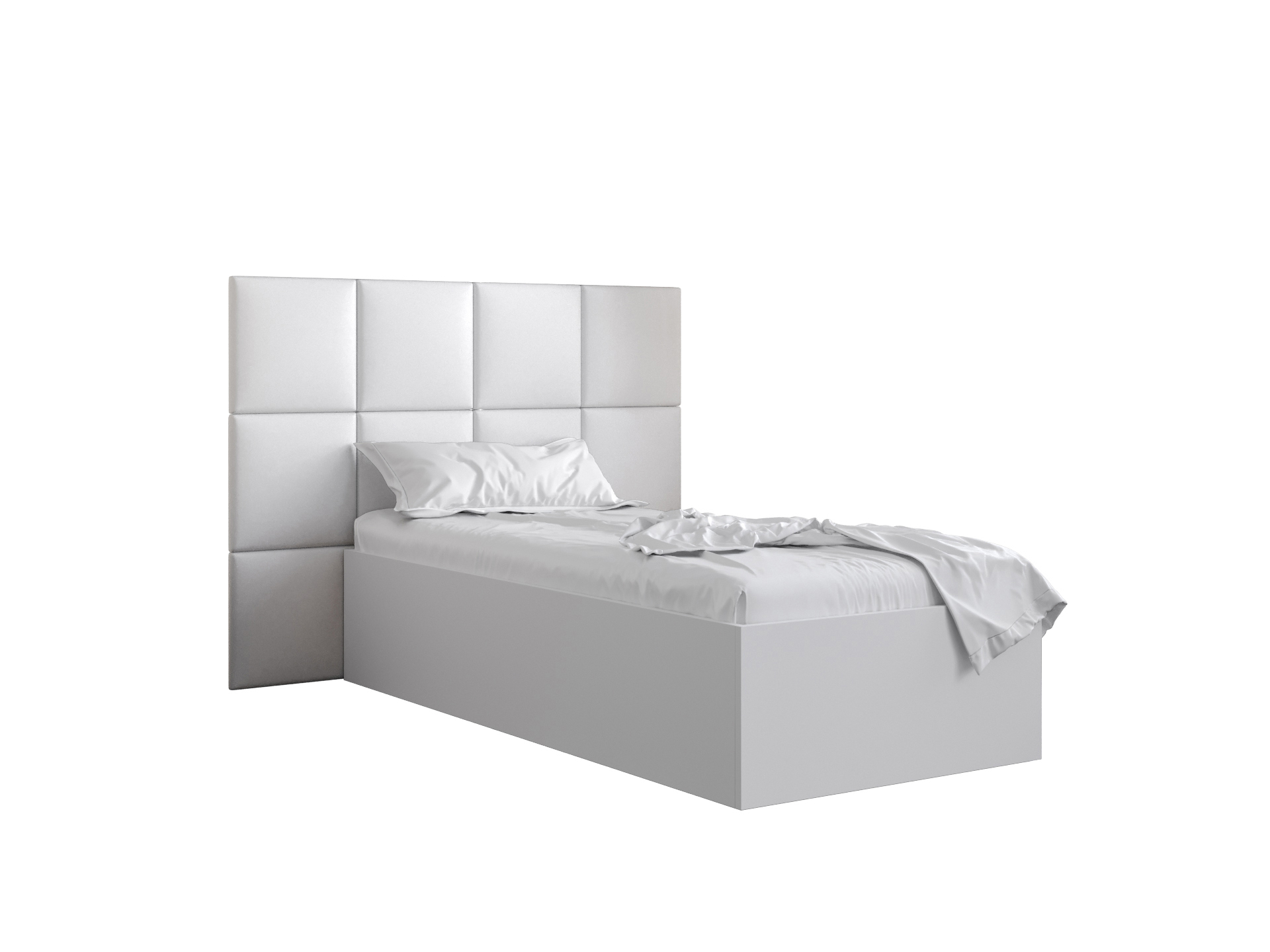 Pat de o persoană cu tăblie tapițată 90 cm Brittany 4 (Alb mat + Alb) (cu somieră)