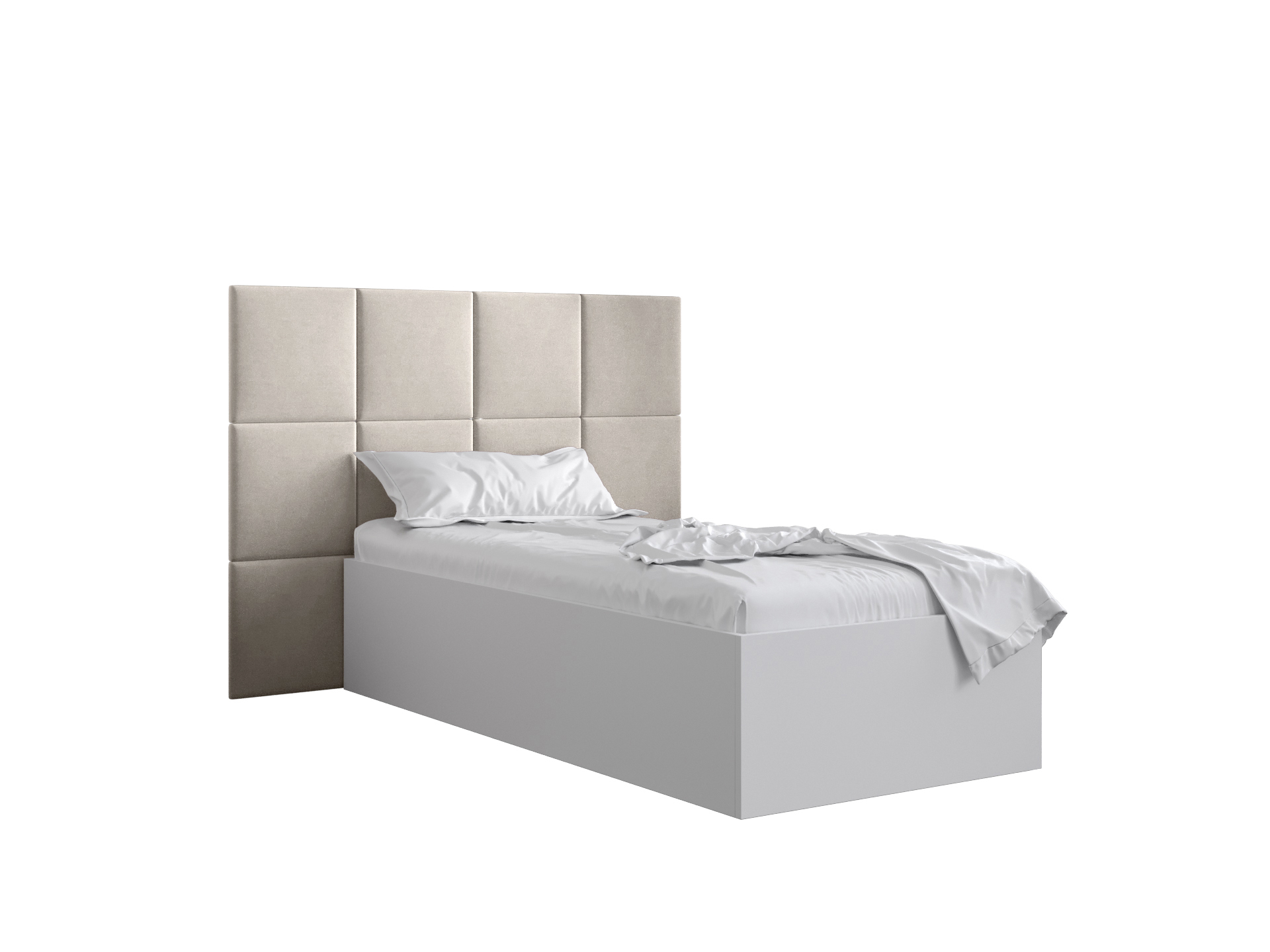 Pat de o persoană cu tăblie tapițată 90 cm Brittany 4 (Alb mat + crem) (cu somieră)