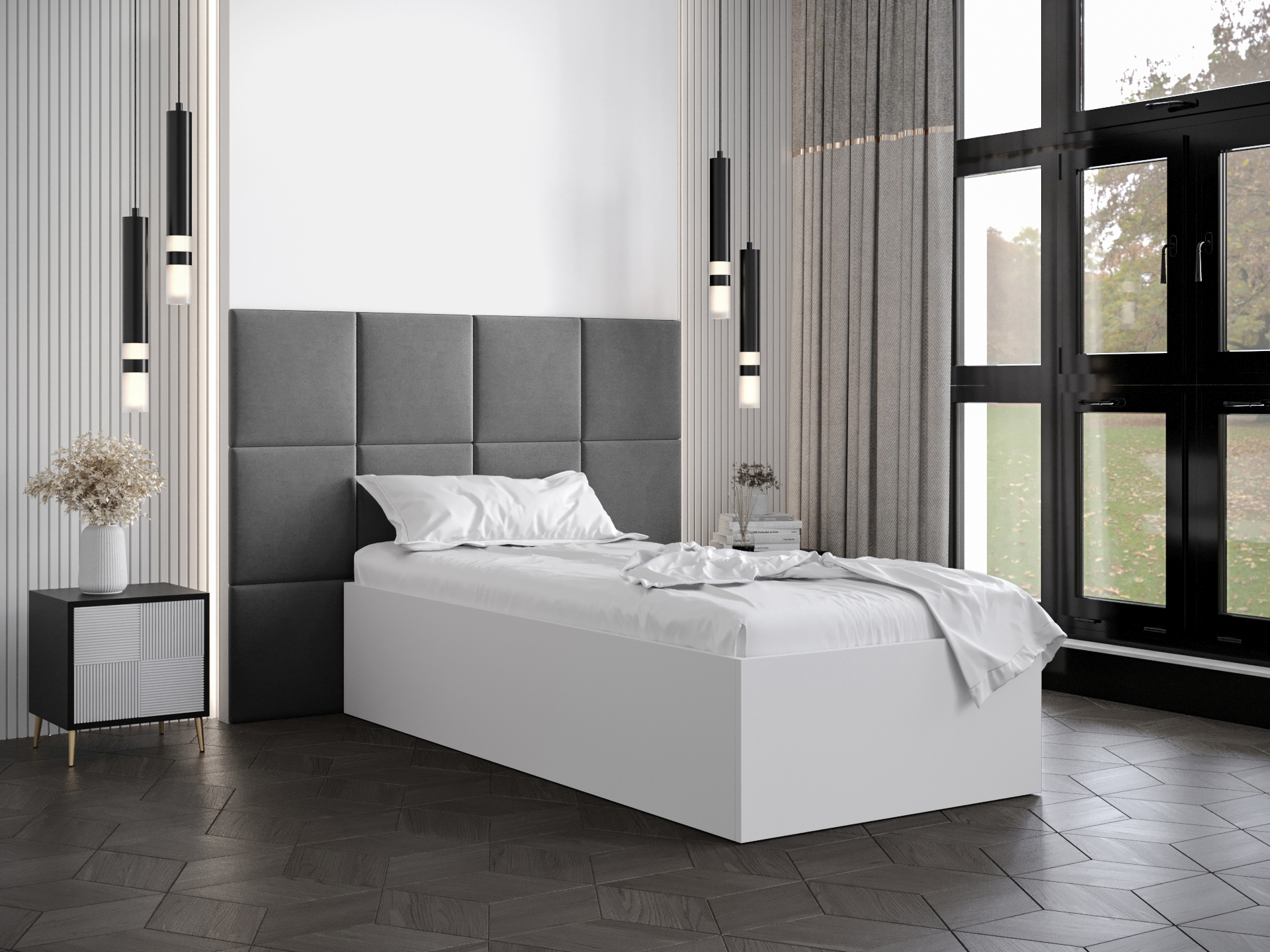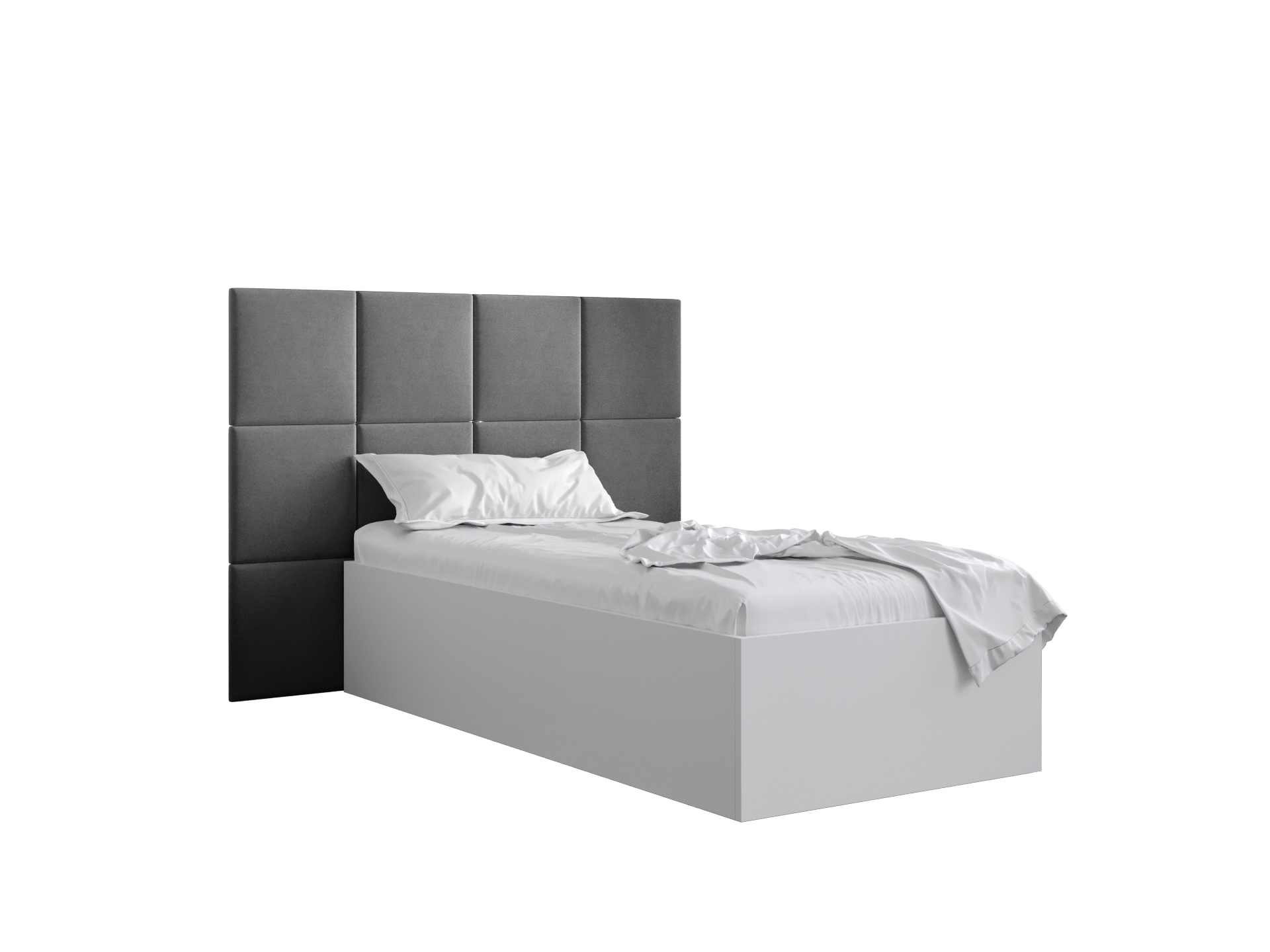 Pat de o persoană cu tăblie tapițată 90 cm Brittany 4 (Alb mat + gri) (cu somieră)