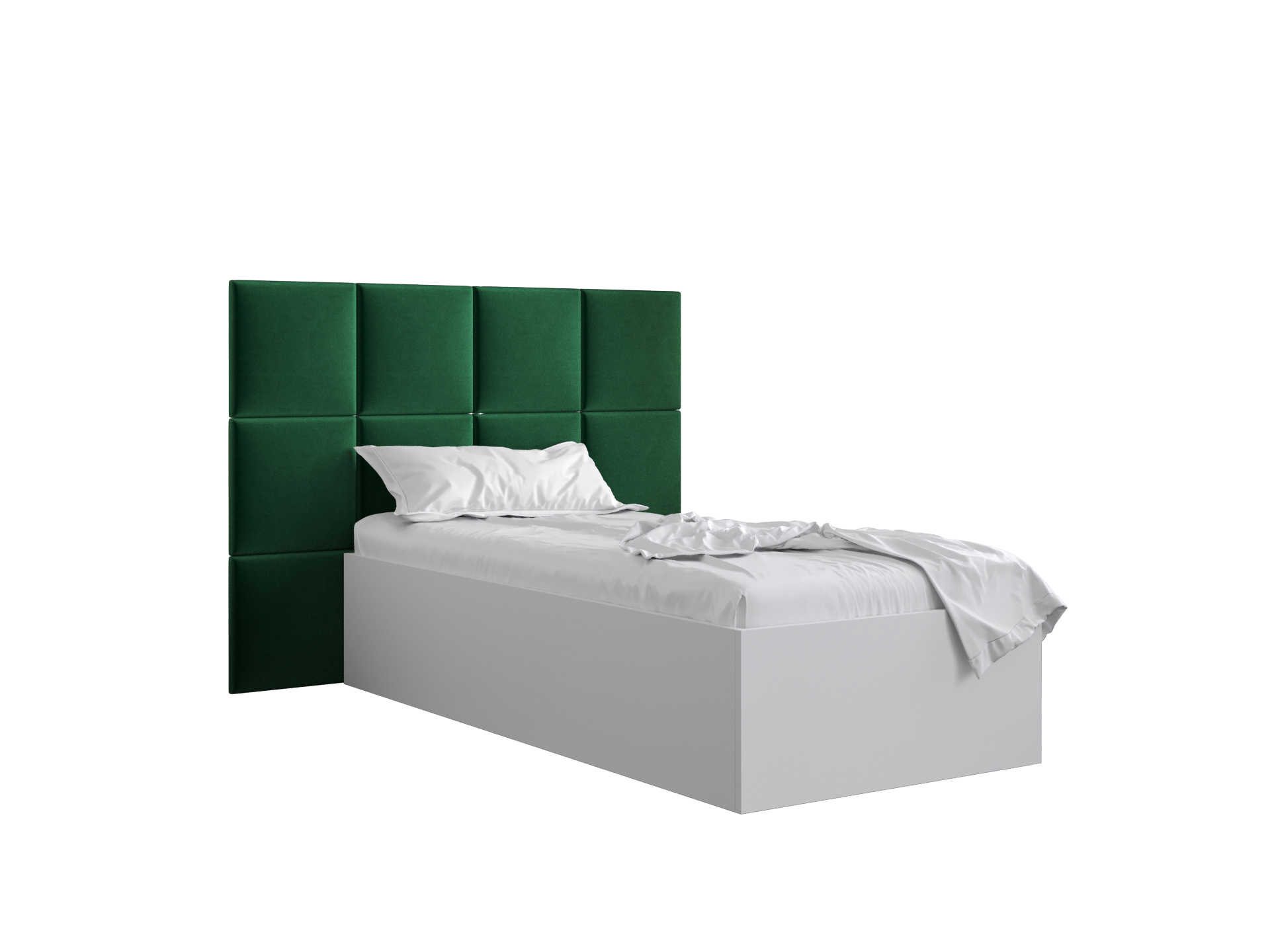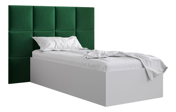 Pat de o persoană cu tăblie tapițată 90 cm Brittany 4 (Alb mat + verde) (cu somieră)