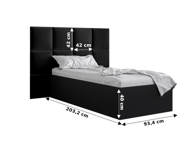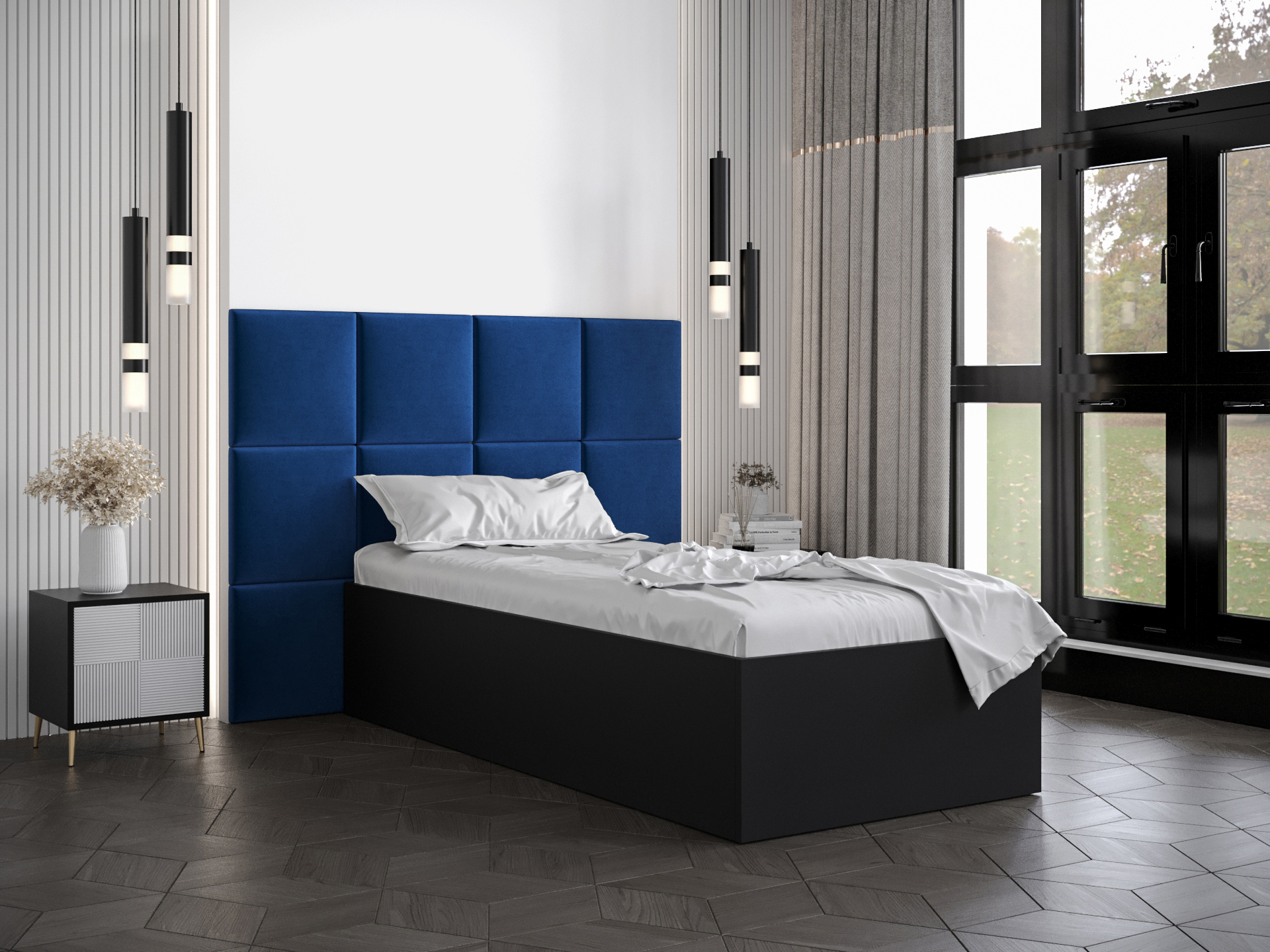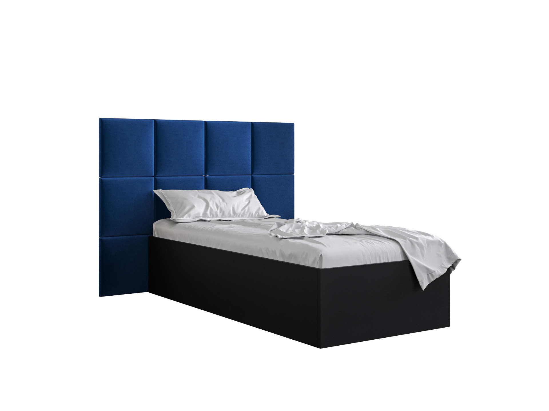 Pat de o persoană cu tăblie tapițată 90 cm Brittany 4 (Negru mat + albastru) (cu somieră)