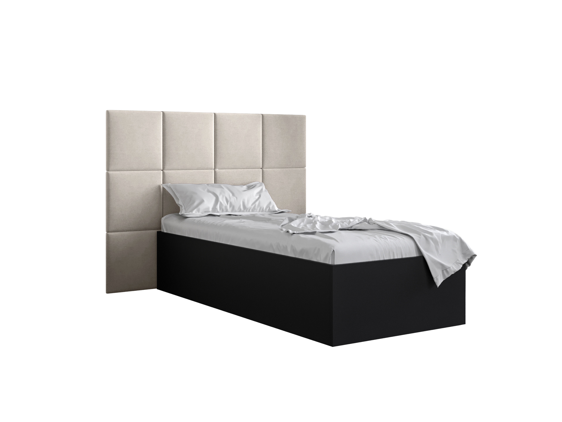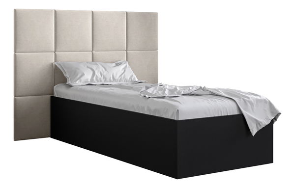 Pat de o persoană cu tăblie tapițată 90 cm Brittany 4 (Negru mat + crem) (cu somieră)