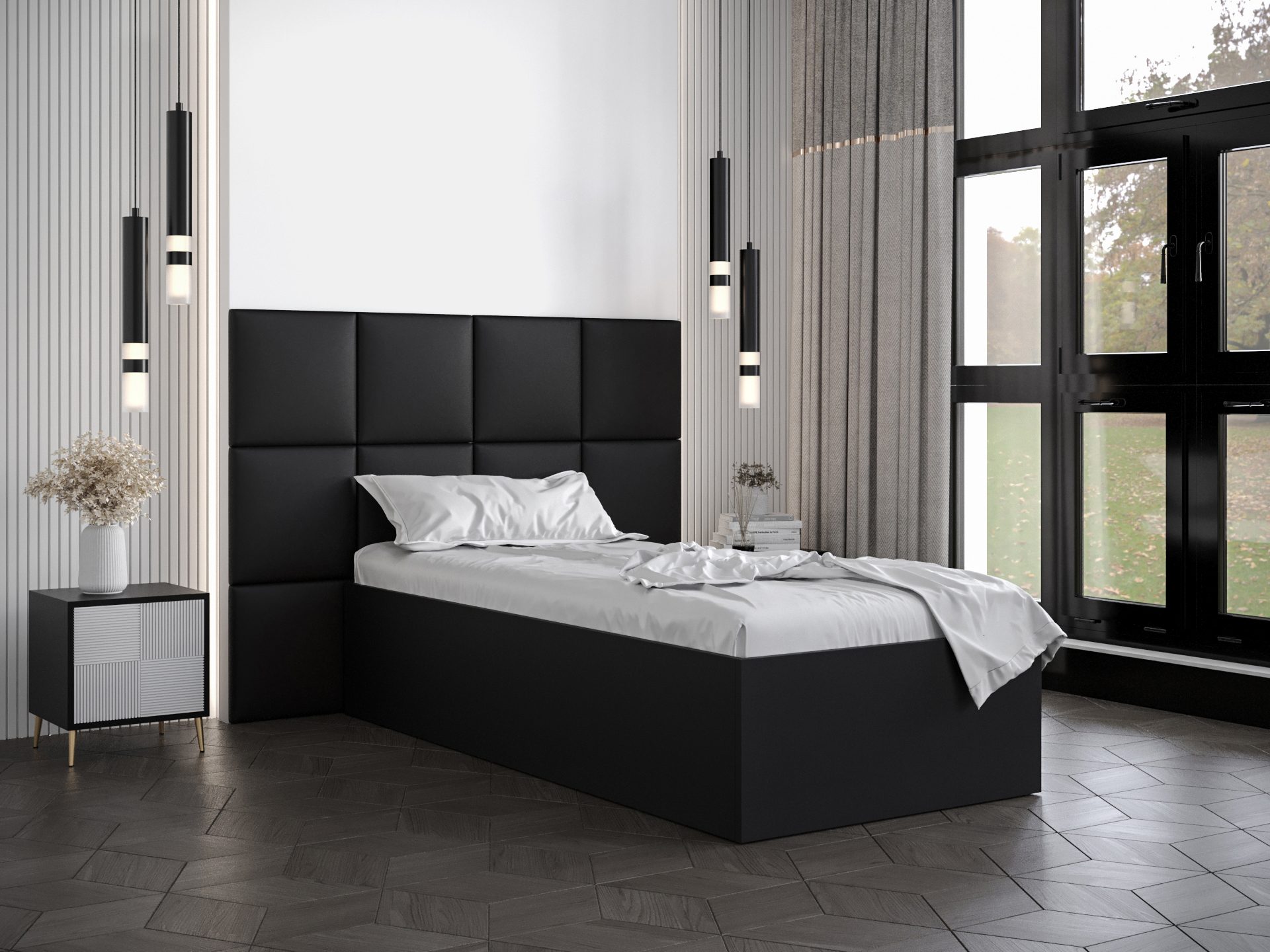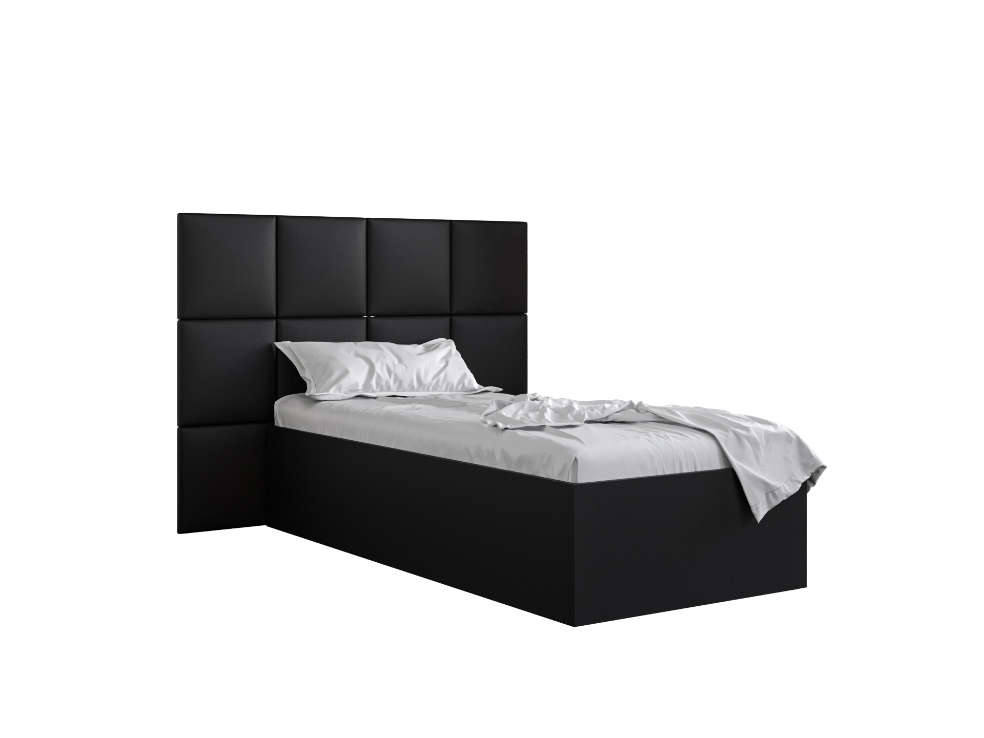 Pat de o persoană cu tăblie tapițată 90 cm Brittany 4 (Negru mat + Negru) (cu somieră)