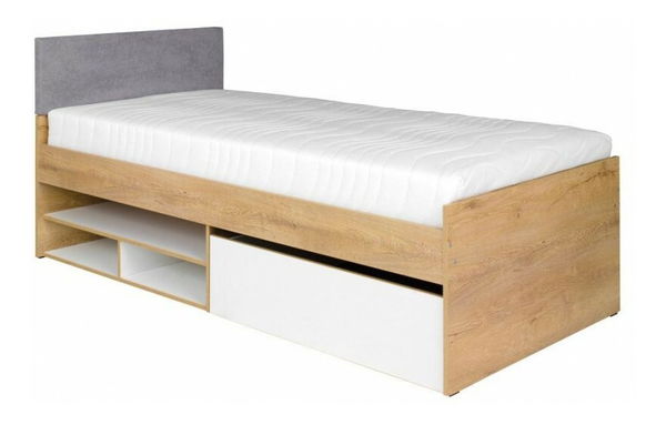 Pat de o persoană Minley M7 (cu somieră și spațiu de depozitare) (stejar lefkas + alb)