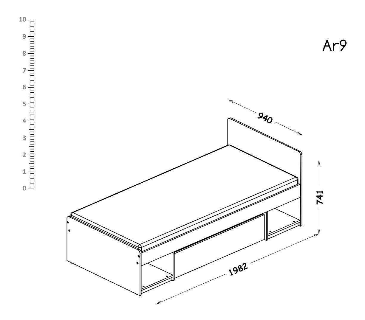 - Pat de o persoană typ AR9 90x195 cm Alishia (alb + stejar wotan)