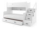 Pat etajat 120 x 200 cm Moxxo 3 (Alb + Alb) (cu somiere, saltele și sp. depozitare)