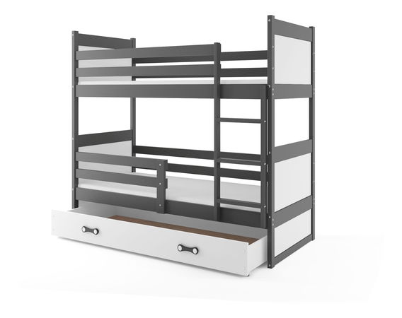 Pat etajat 80 x 160 cm Ronnie B (grafit + Alb) (cu somiere, saltele și sp. depozitare)