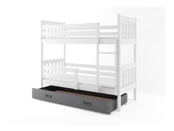Pat etajat 80 x 190 cm Carius B (Alb + grafit) (cu somiere, saltele și sp. depozitare)